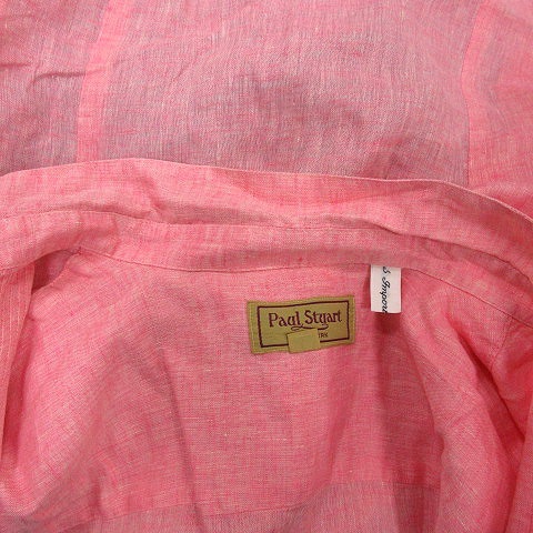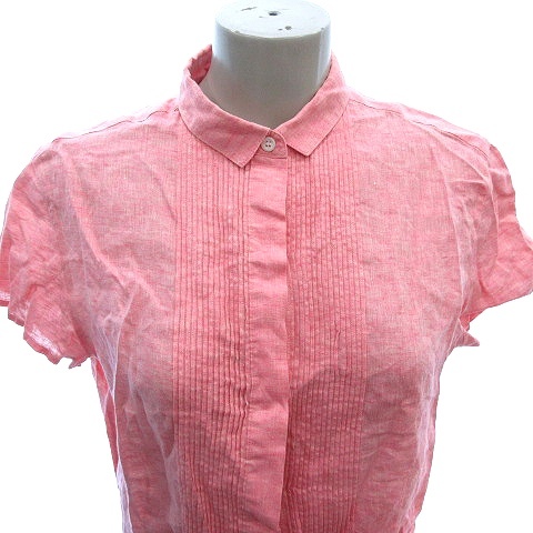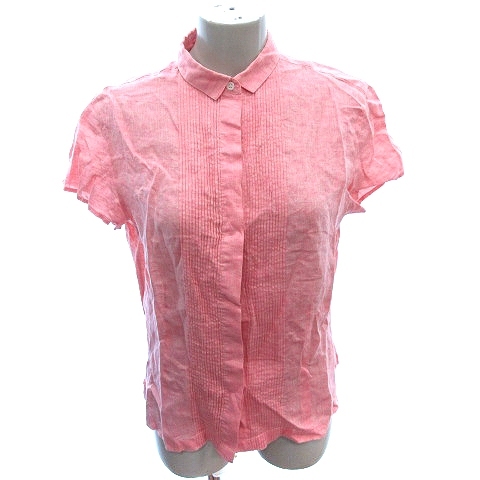 ポールスチュアート PAUL STUART シャツ ブラウス タイニーカラー 麻 リネン 半袖 L ピンク /AU レディース