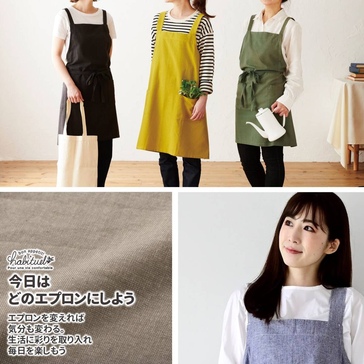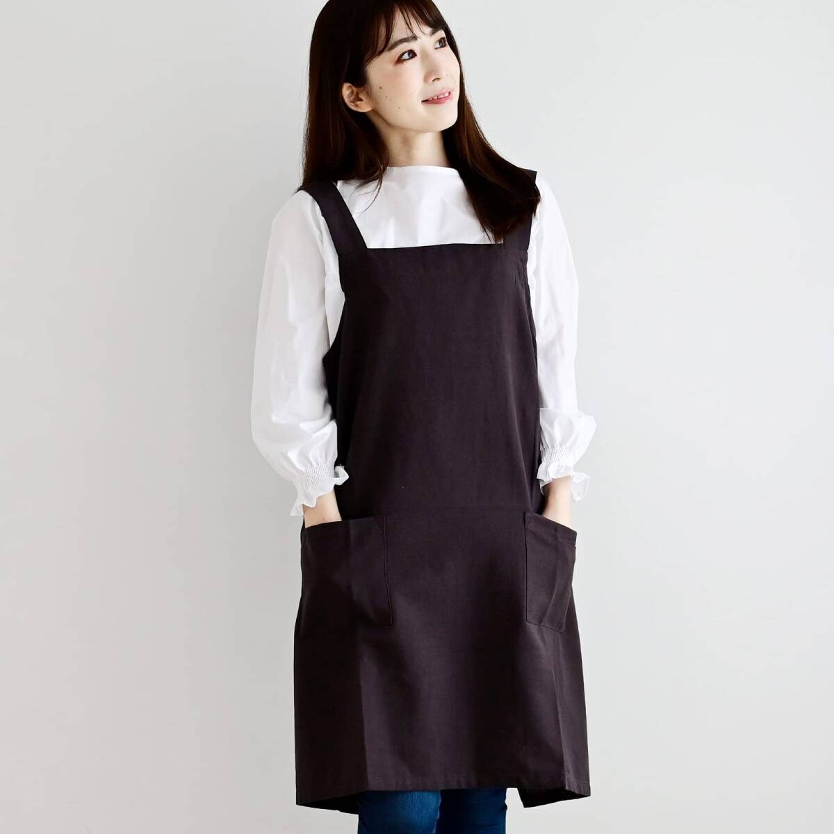 ・着用が楽ちんなかぶるだけのバッククロスタイプのエプロンです。シンプルなカラーの無地デザインなので、お洋服を選ばずに、ユニセックスアイテムとしてもおすすめです。