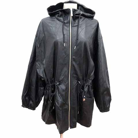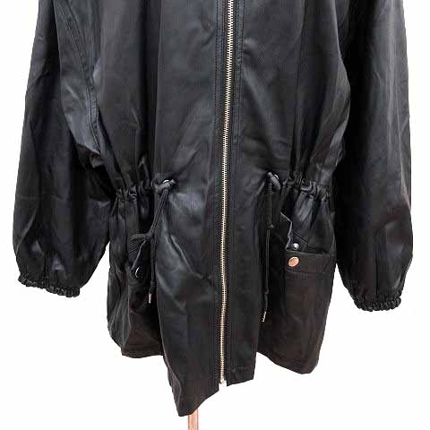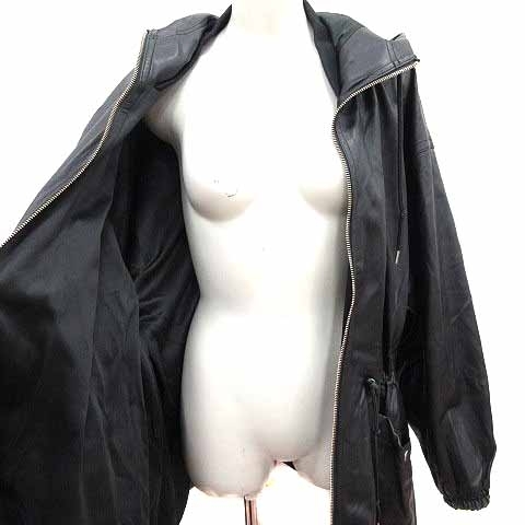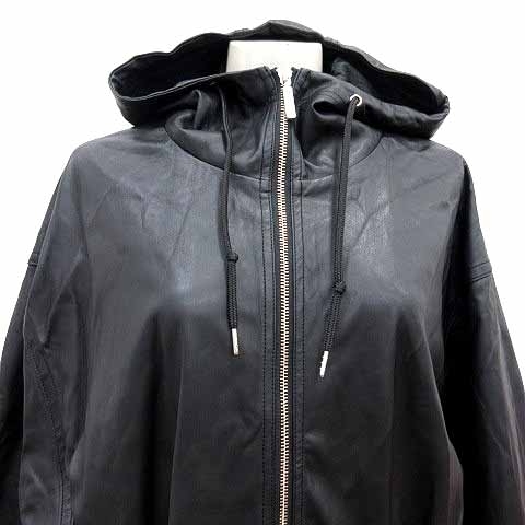 ジーナシス JEANASIS フェイクレザージャケット 合成皮革 ジップアップ フード 長袖 F 黒 ブラック /YK レディース