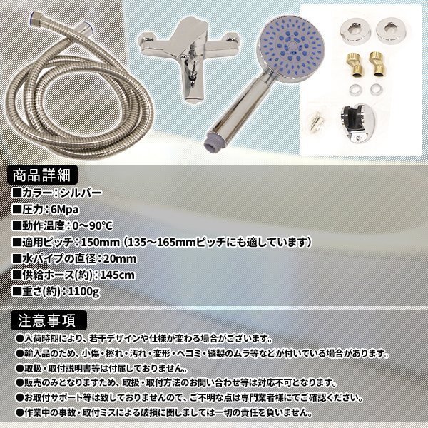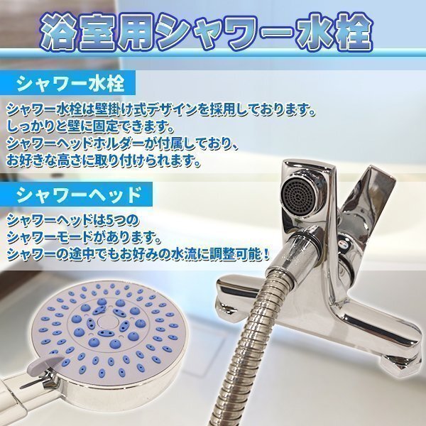 シャワー水栓 浴室用 混合栓シャワー 冷熱 混合型 シャワーヘッド付き 壁掛け式