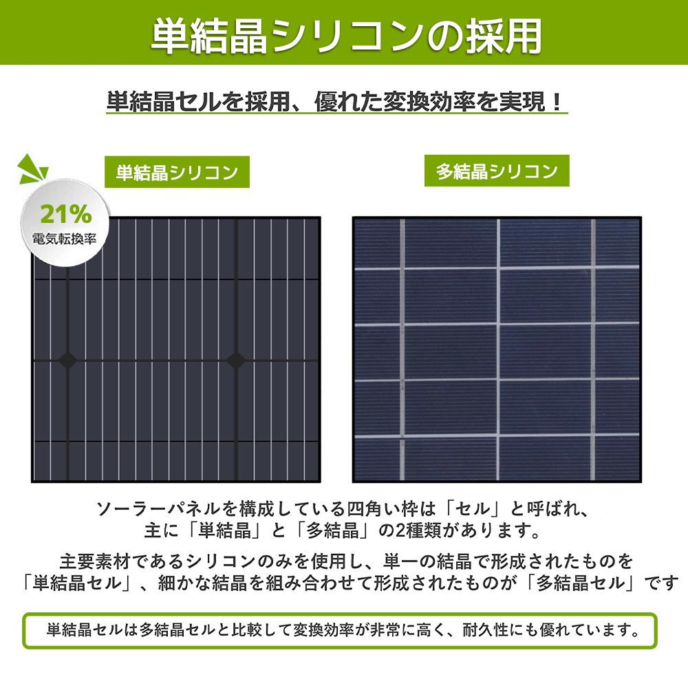 パネルのセルには単結晶シリコンを採用しており。高転換率「21%」を実現!