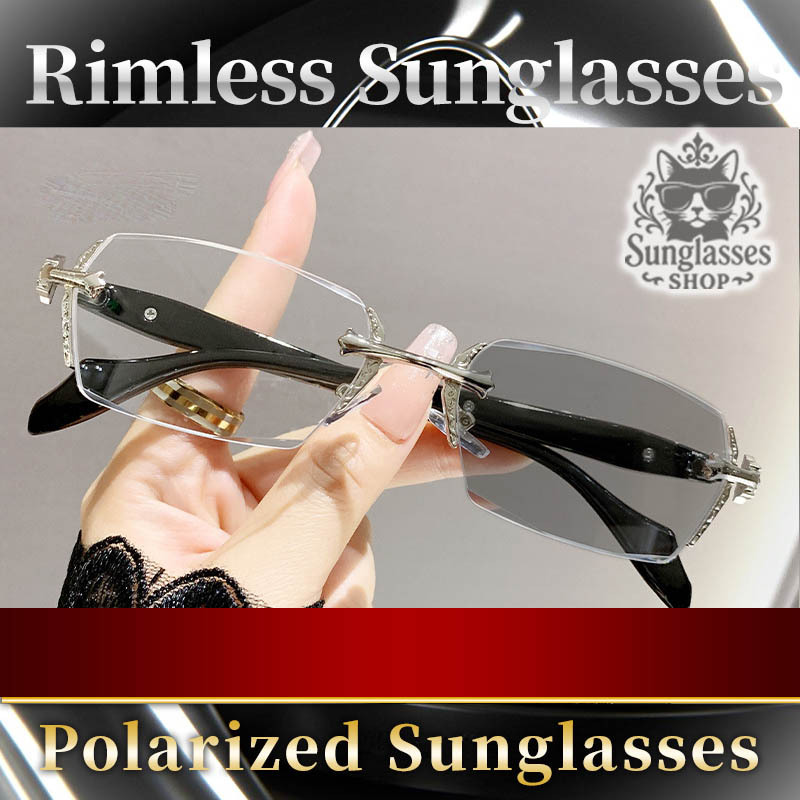 | サングラス リムレス 偏光 シルバー 伊達メガネ 縁なし 軽量 高級感 調光レンズ クリア グレー フチなし メンズ レディース ガクト風 |