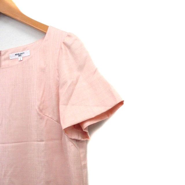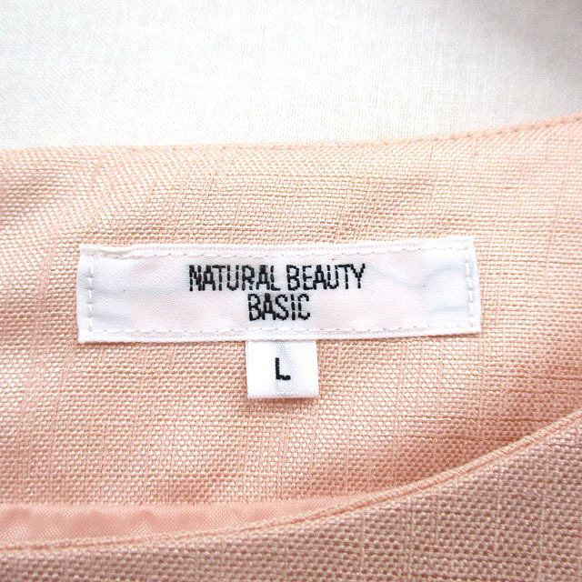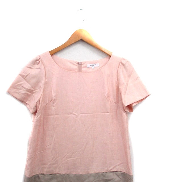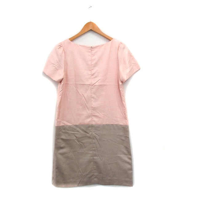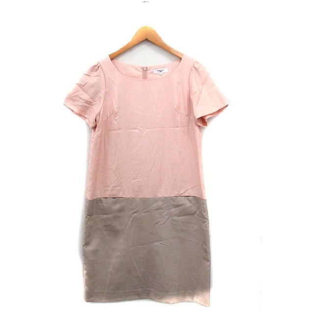ナチュラルビューティーベーシック NATURAL BEAUTY BASIC ワンピース 半袖 膝丈 バイカラー L ピンク /KT22 レディース