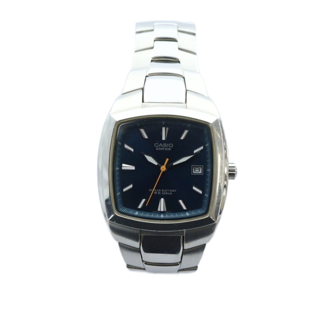 カシオ CASIO エディフィス EDIFICE 腕時計 ウォッチ クォーツ カレンダー付き 青文字盤 ロゴ スクエア シルバー色 EF-119
