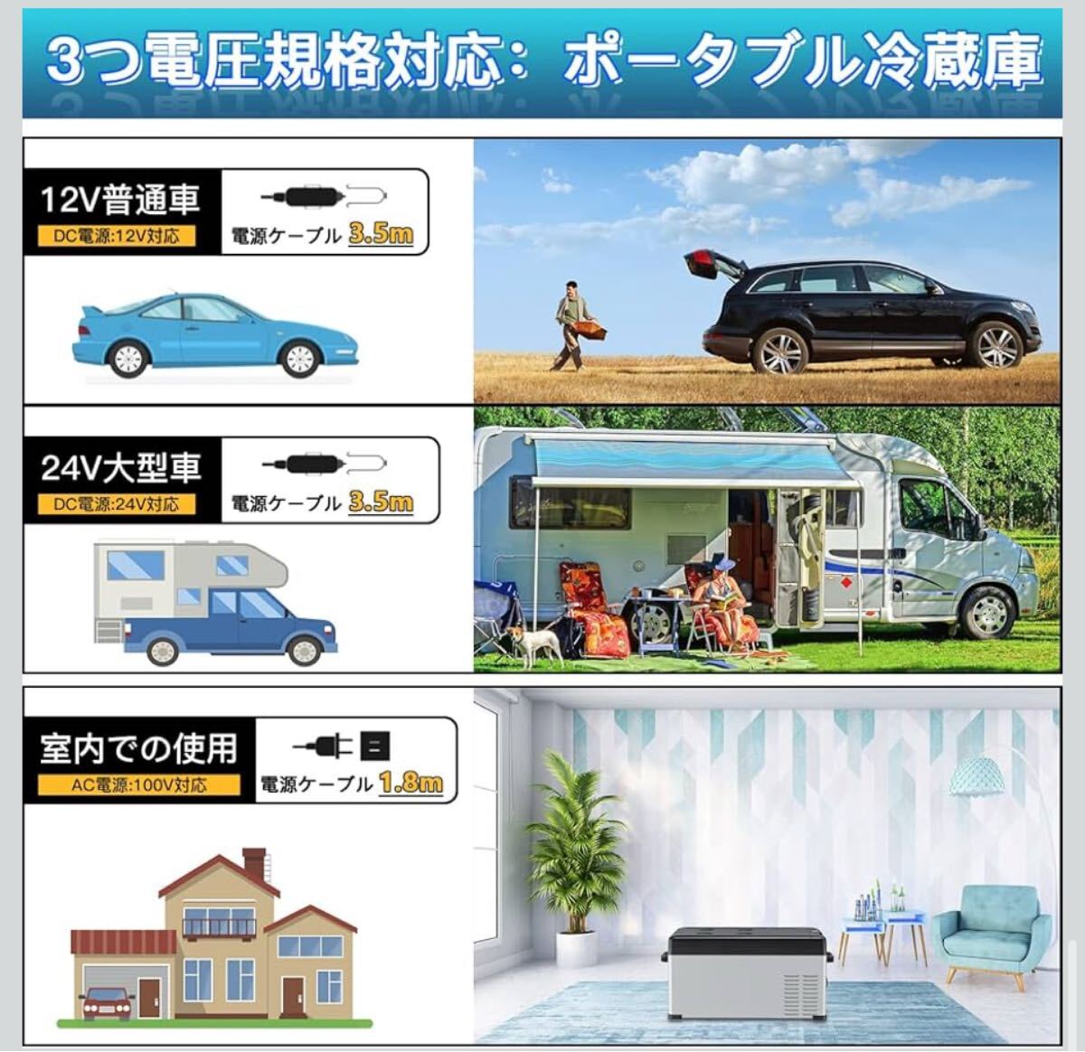 【ドライブ旅に大活躍】ポータブル冷蔵庫は2種類の電源ケーブルを付属し、車載DC12V/24V&家庭用AC100V電源に対応できます。稼働時騒音ほぼなし、運転時の激しい振動でも問題なく稼働可能。更に、庫内にLEDランプ完備、車中泊、長距離運転時にピッタリ。