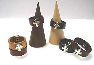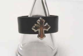 ・9ミリ幅のイタリー製レザーにクロスの飾りカシメを留めたハンドメイドのレザーリングです。