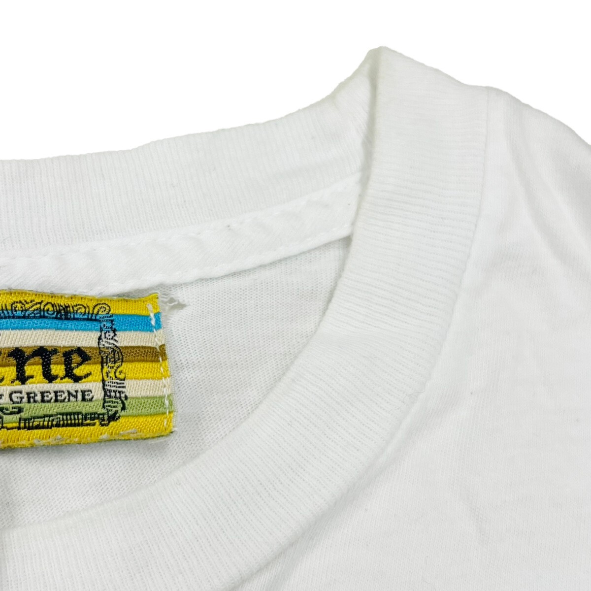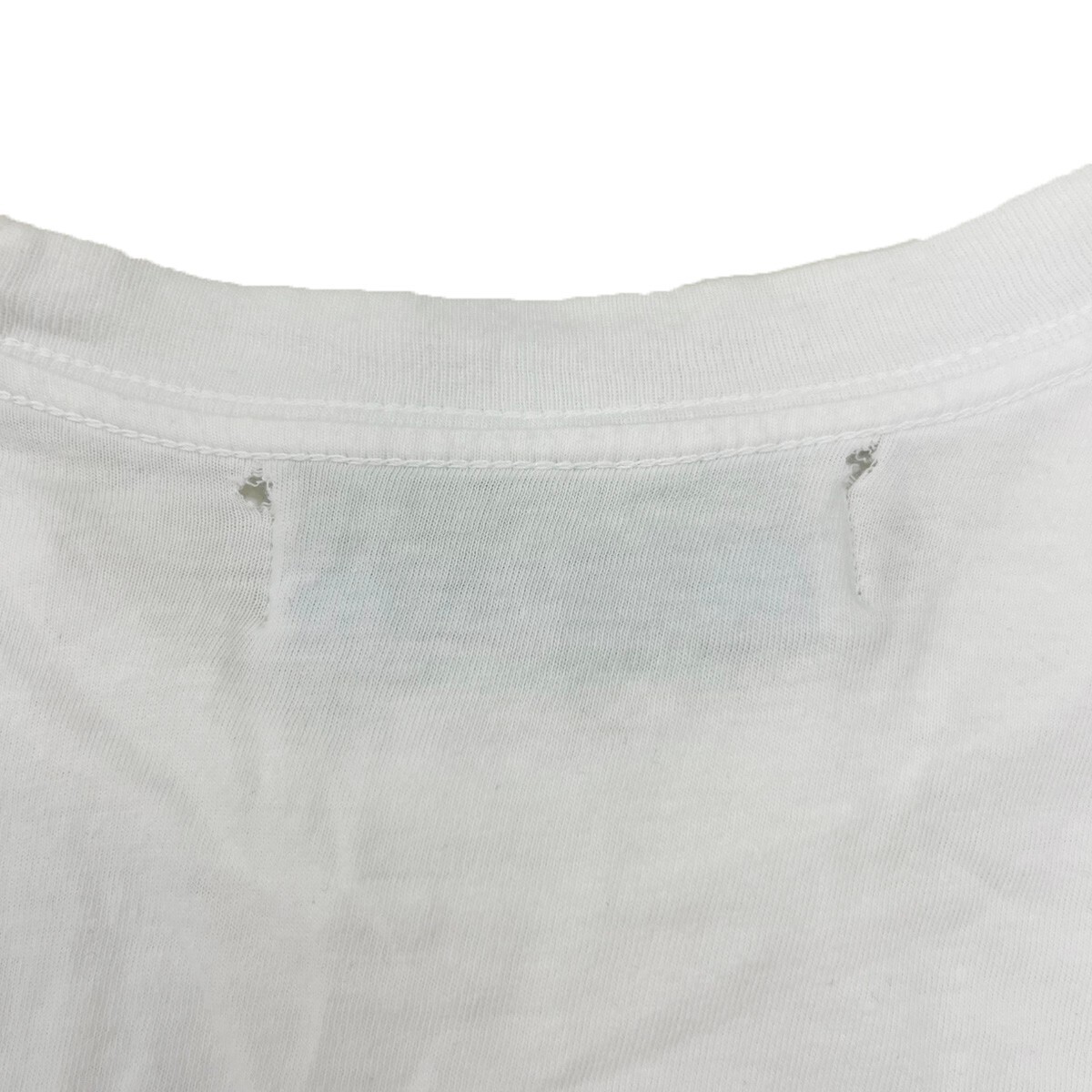 全体的に毛羽立ち・使用感、首まわりに黄ばみ、胸元にシミ、ブランドタグの付け根の生地に裂けによる穴が開いております。