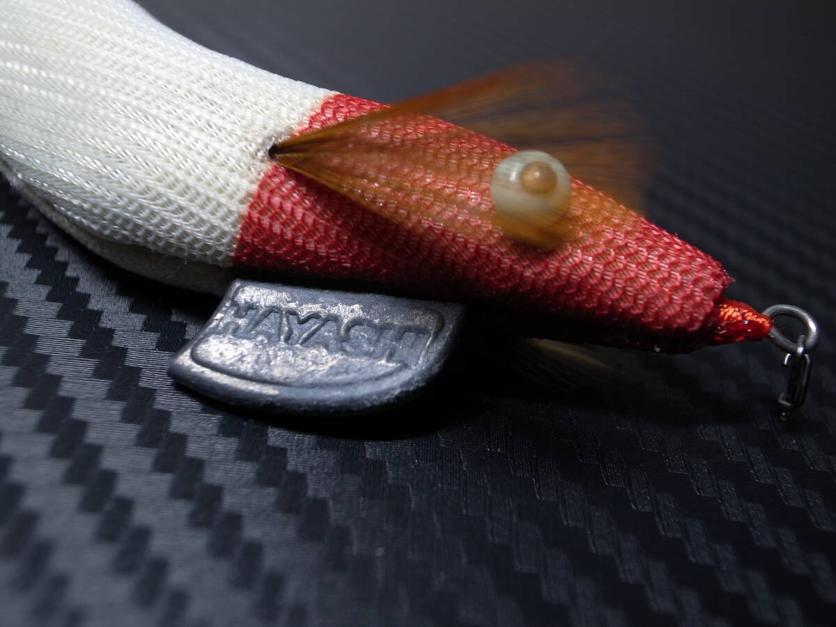 餌木猿 2.5号 TE-03 赤白 桐ボディ エギング イカメタル仕様 夜光ボディHAYASHI 林釣漁具製作所 エギザル アオリイカ ツツイカ USED |