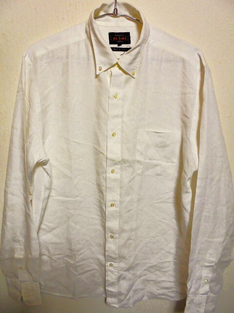●良品 ビームスプラス リネン ボタンダウン 長袖シャツ サイズXL ホワイト●