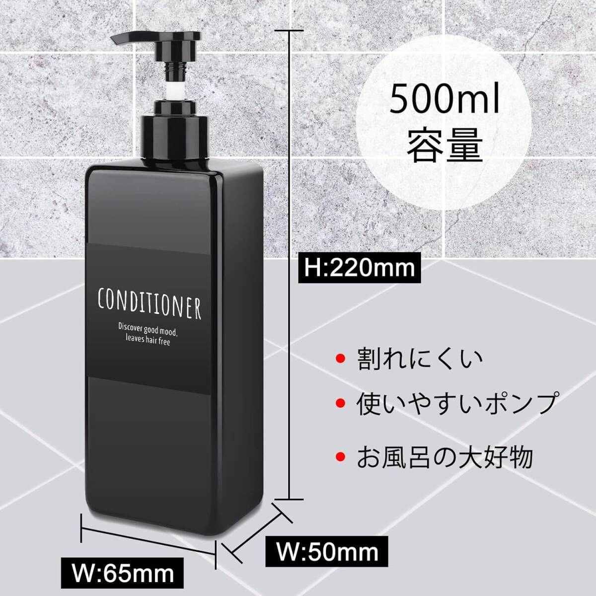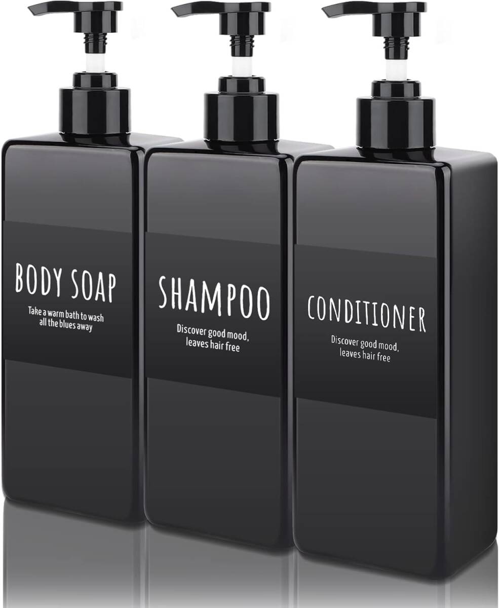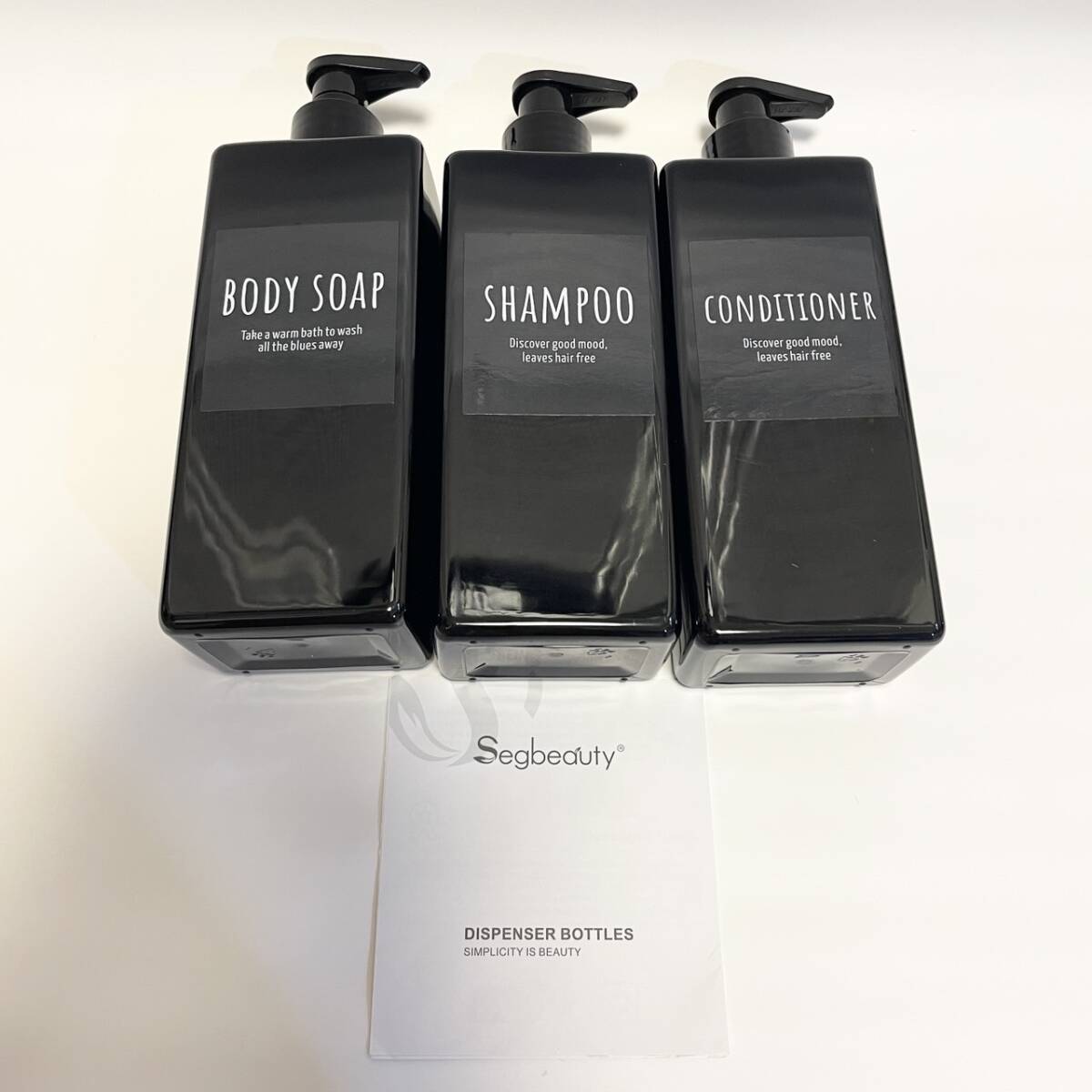 Segbeauty シャンプーボトル ディスペンサー 詰め替えボトル 黑色 500ml 3本セット ブラック 方形 漏れ防止 3種類 シール付き 浴室 洗面所 キッチン アルコール 食器用洗剤 適用