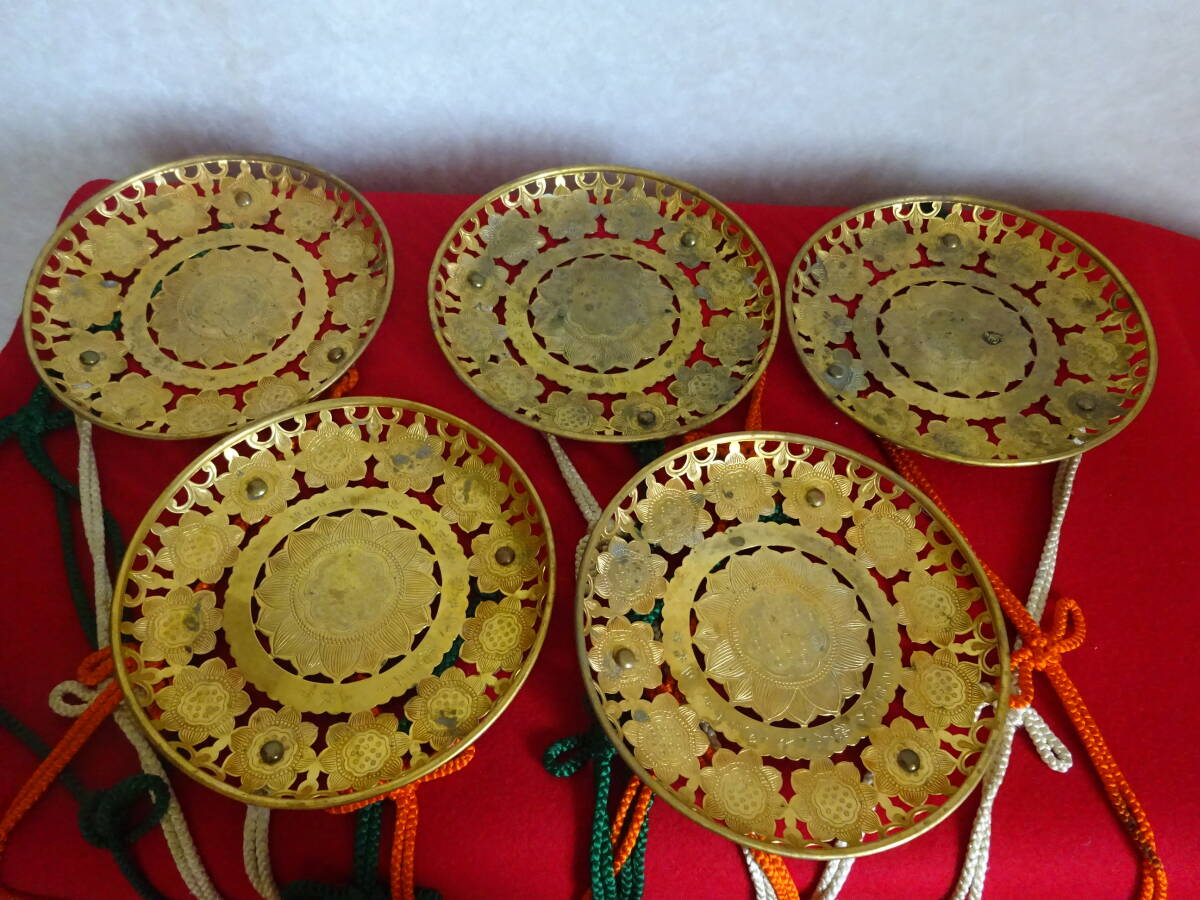 時代 花籠 (けこさら) 花皿 散華 約13㎝ 5枚 仏具 仏教 仏教美術 法具
