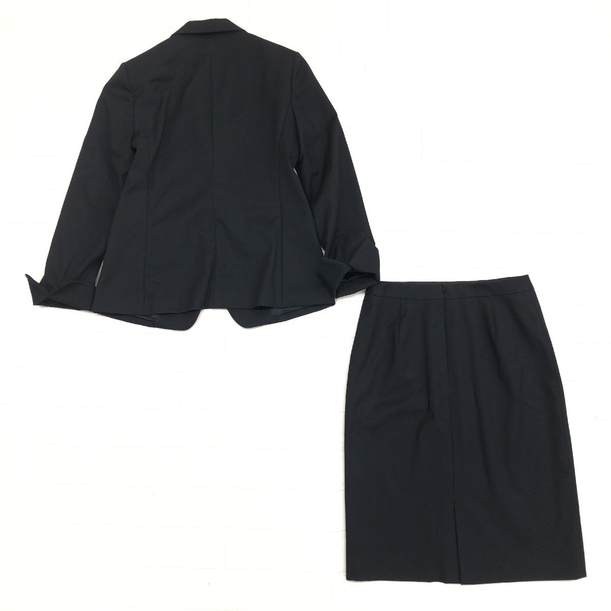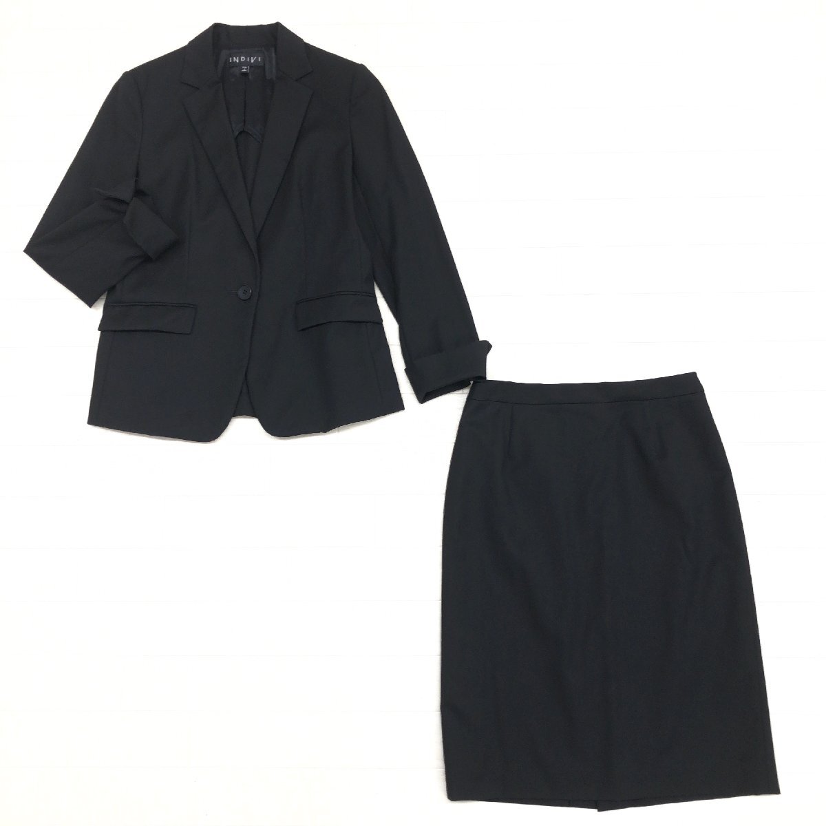 ●INDIVI インディヴィ スカートスーツ 上下セットアップ 38(M) 黒 ブラック ジャケット ビジネス 通勤 日本製 国内正規品 レディース 婦人