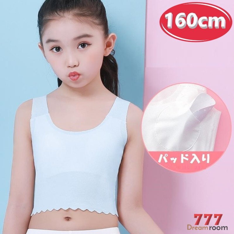 1スタ☆kids トップに響かない シームレス ハーフトップ 【ブルー 160cm 】ブラトップ スポーツブラ ファーストブラジャー 子供 女の子 K-282