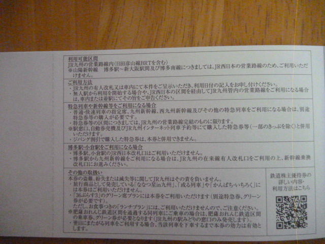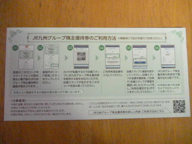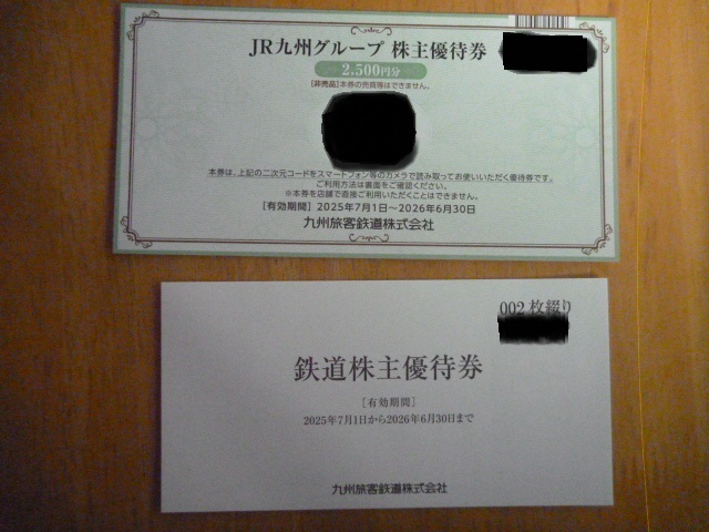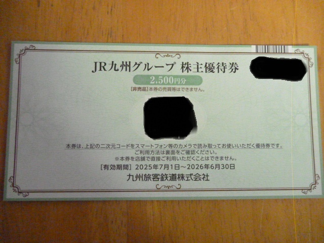 ・JR九州グループ株主優待券 2,500円分