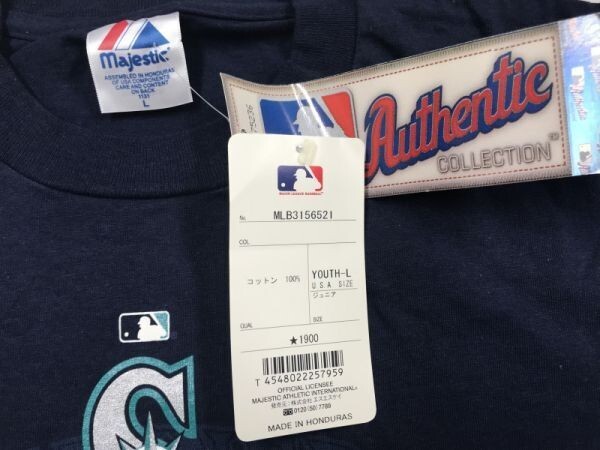 新品 マジェスティック Majestic スポーツ 野球 MLB シアトル・マリナーズ Seattle Mariners 半袖Tシャツ キッズ コットン100% YOUTH L 紺 です。