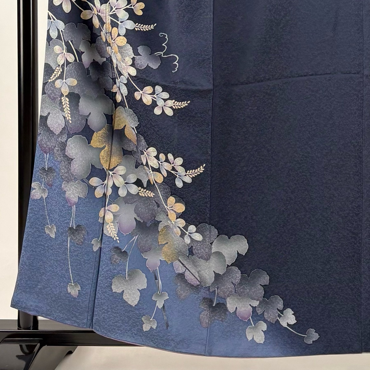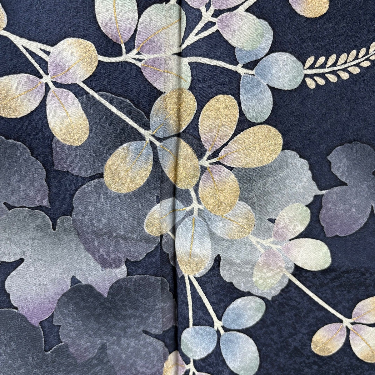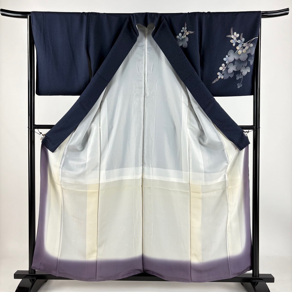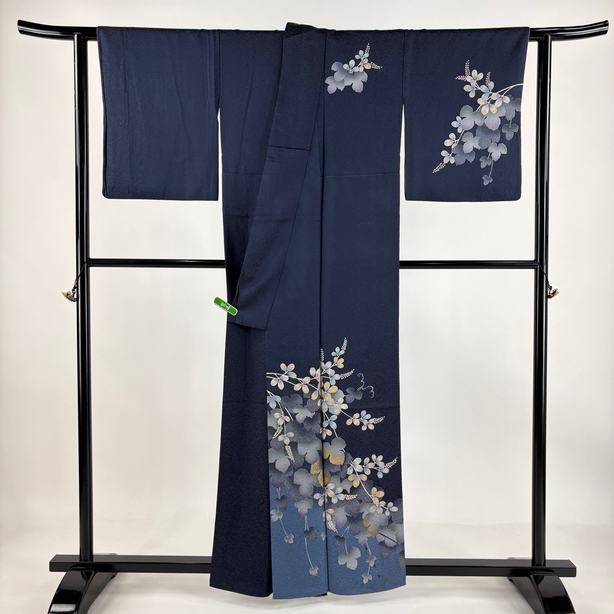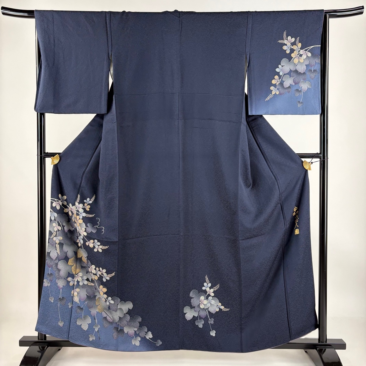 | 付下げ 逸品 中村乃武夫 落款 やまと 萩 蔦 金彩 染め分け 紺色 袷 身丈158 裄丈65.5 M 正絹 【中古】 |