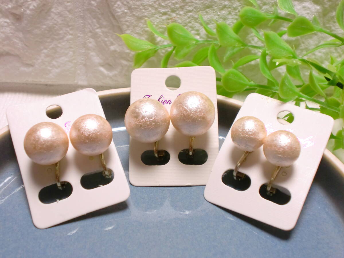 3ペア♪■ヴィンテージパールのイヤリング♪■3サイズ■キスカカラー♪