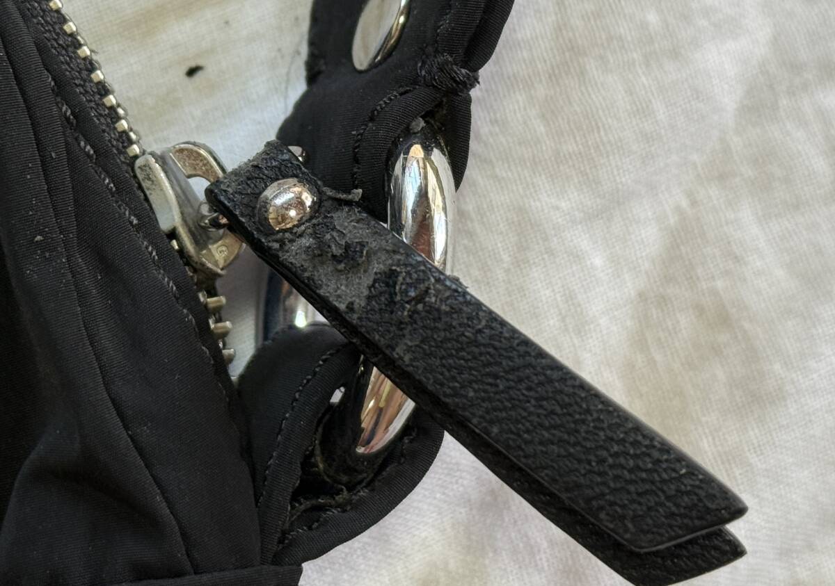 状態に関して、こちら長期保管品で多少古くなっており、画像のようにジッパー持ち手の剥がれありますが、特に問題なく利用可能です