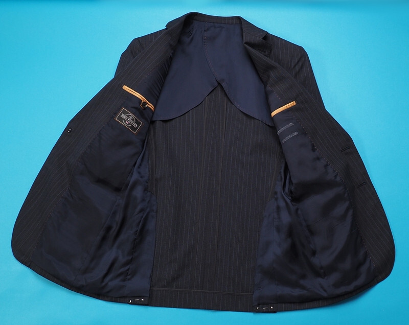AMFステッチなど、百貨店向けならではの上級仕立てで仕上げられております。ファブリックは英国随一の伝統を誇るジョンフォスター社のウール100%生地を使用。英国生地ならではのトラッドなストライプが綺麗な最高峰の逸品です。耐久性がありコストパフォーマンスにも優れています。
