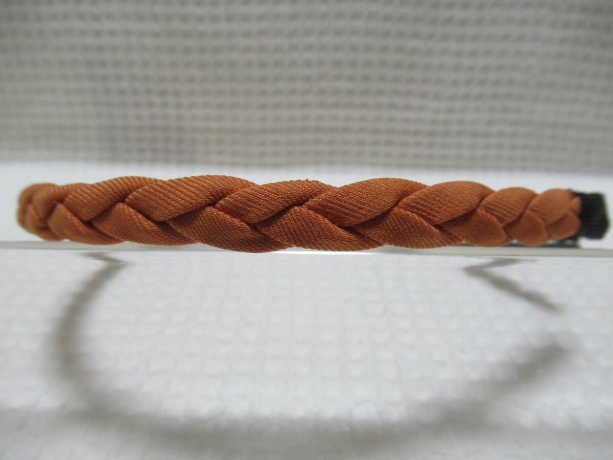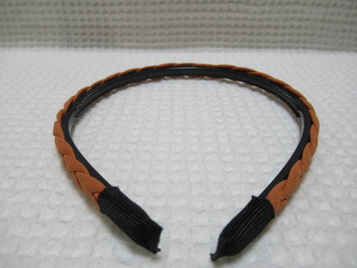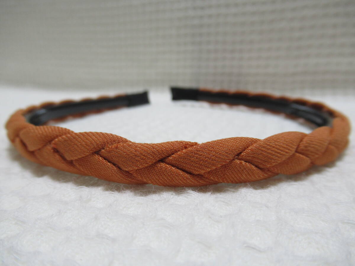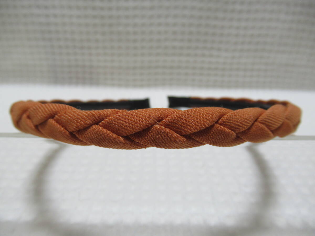 オレンジ系色生地のミツアミ型 細いカチューシャ