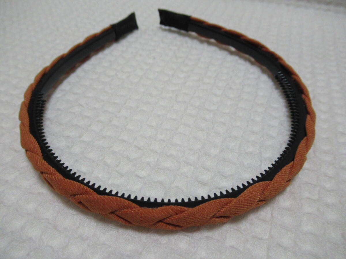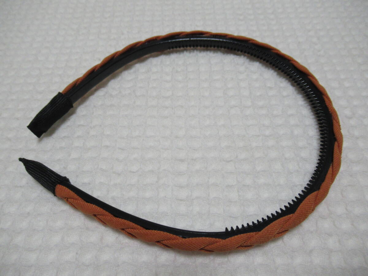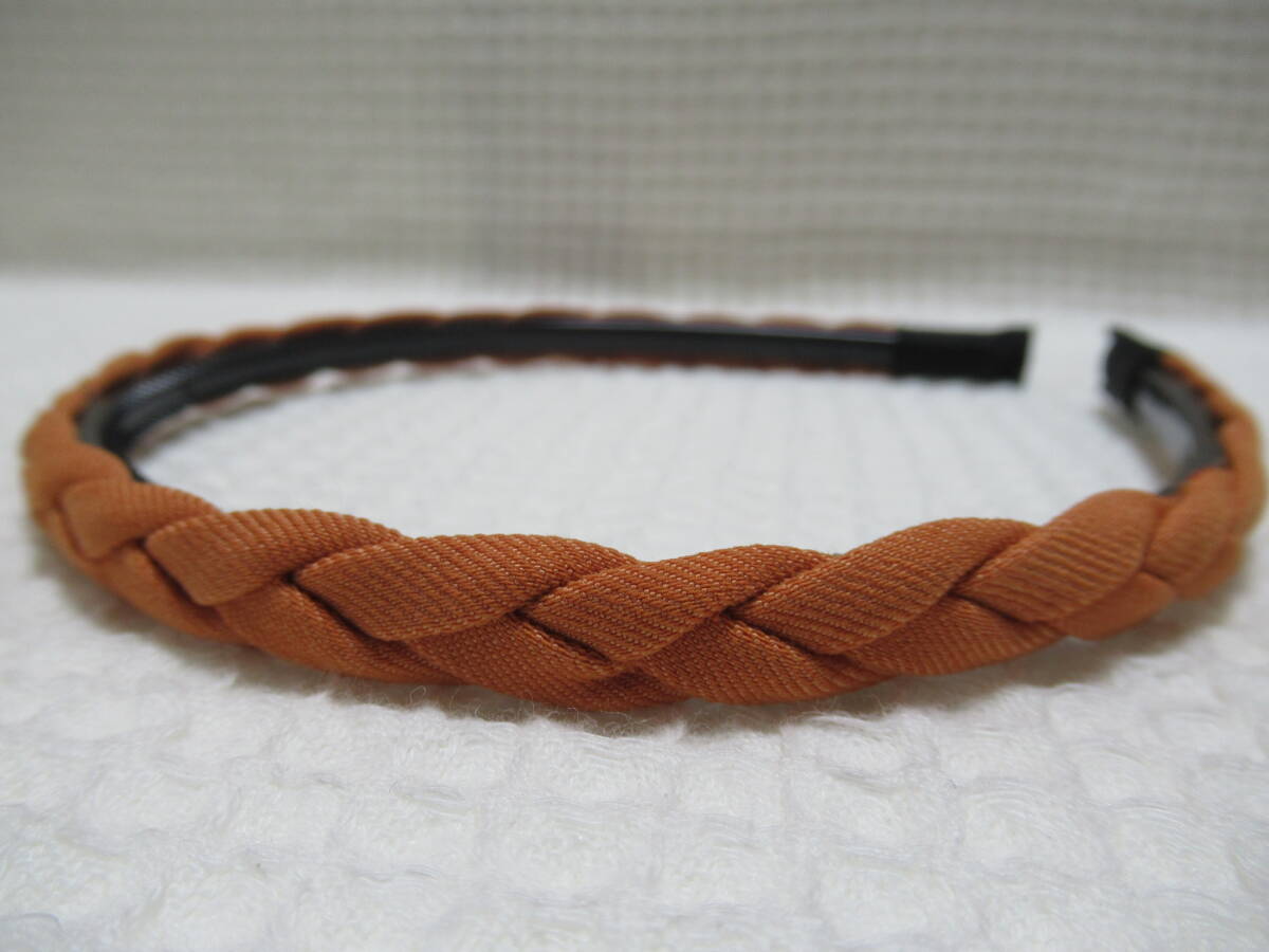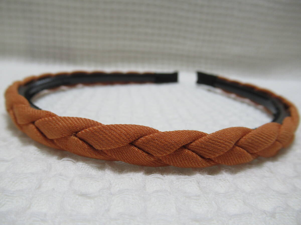 オレンジ系色生地のミツアミ型 細いカチューシャ