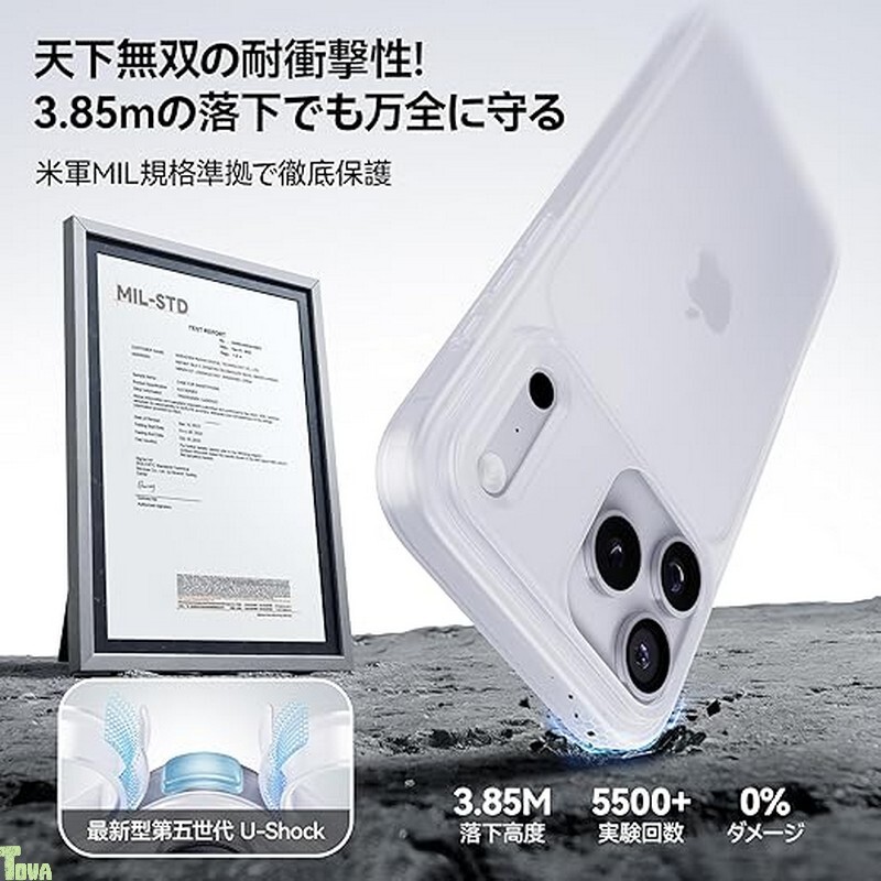 クリア 半透明 マット 米軍規格 ワイヤレス充電 ストラップホール 全面保護 アイフォン iPhone 17 Pro 保護 バンパー ケース カバー