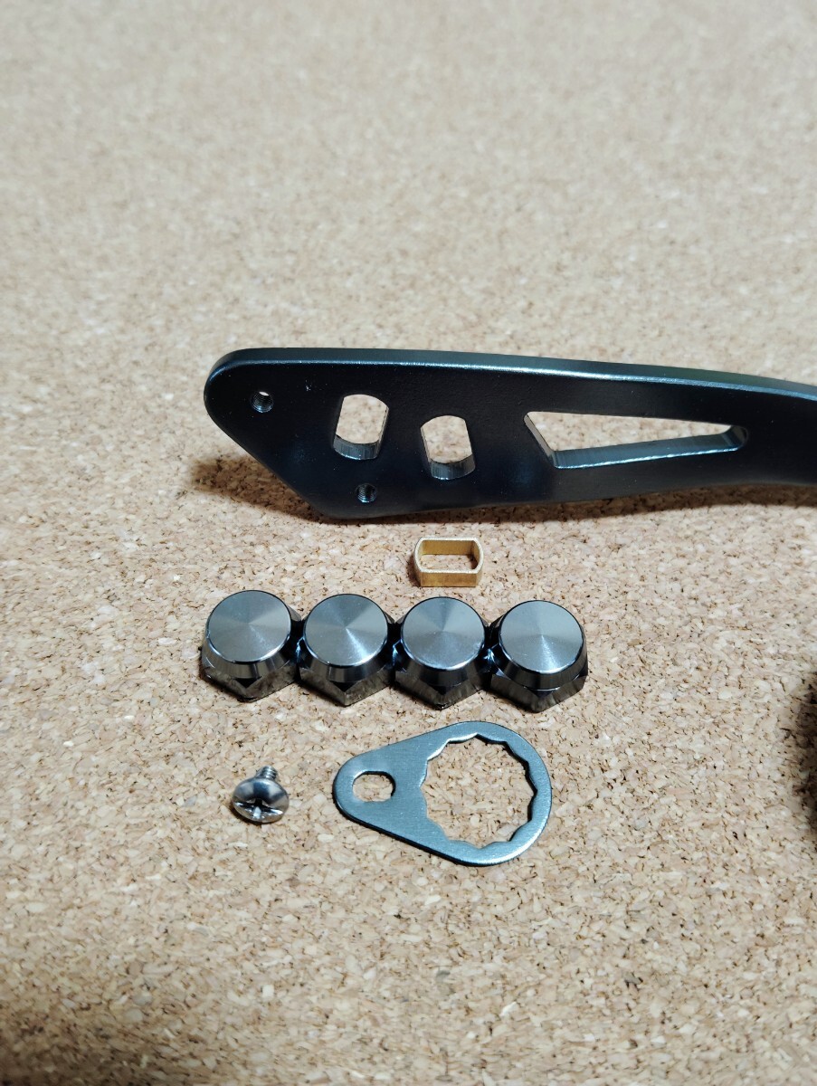 付属品は写真1枚目にあるものが全てです。アブ、ダイワ、シマノ適応左右ハンドルナット、リテーナー、シマノ用ナット取付部スペーサーてす。またハンドルナットは装着確認はしていないので、右のみとか左のみとか偏ったナットセットになっている場合がございます。