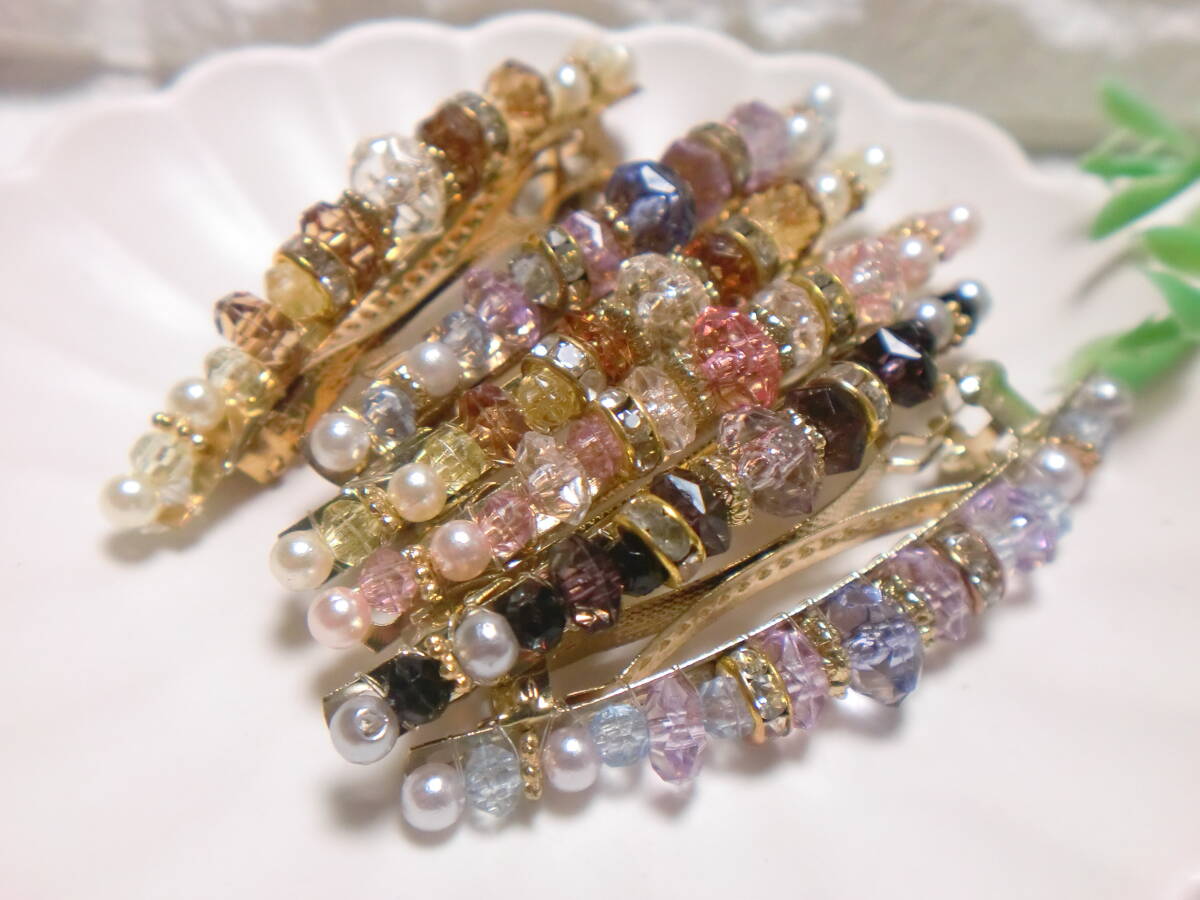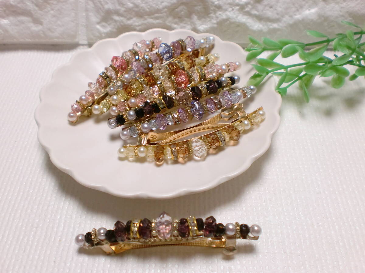 カットパーツ・パール・ガラス石付きロンデルがおしゃれなminiバレッタです!
