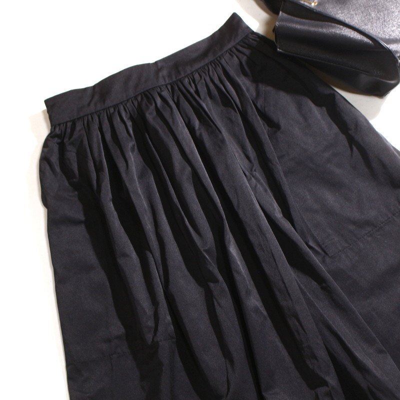 ほんのり艶、秋冬向き合物のしっかりめ生地、ギャザー入ったデザイン、1枚は持っておきたい人気アイテムです。左右にポケット、ファスナーは左側です。