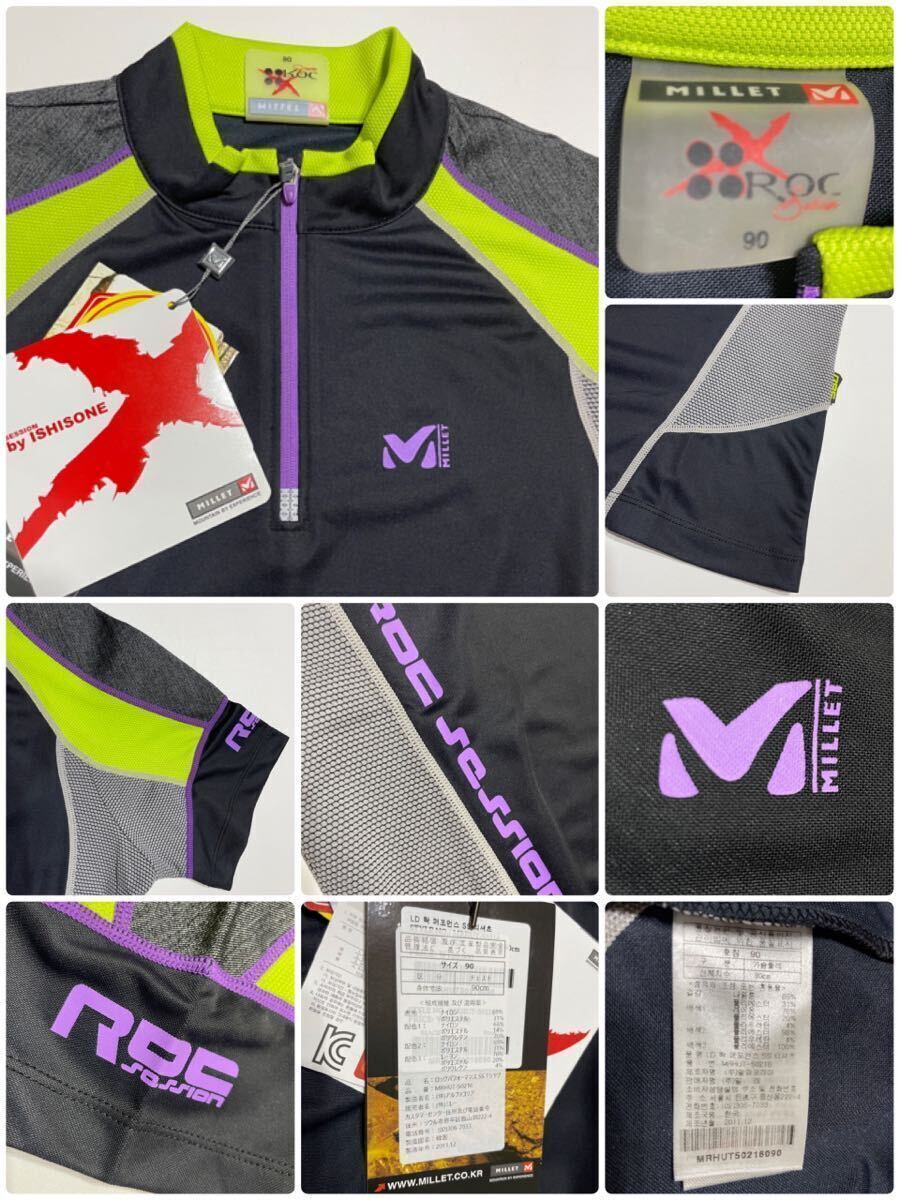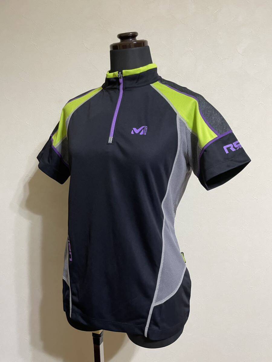 【未使用品】 MILLET ミレー アウトドア レディース 切替し ロックパフォーマンス ハーフジップ プルオーバー ウェア サイズ90 (S)半袖