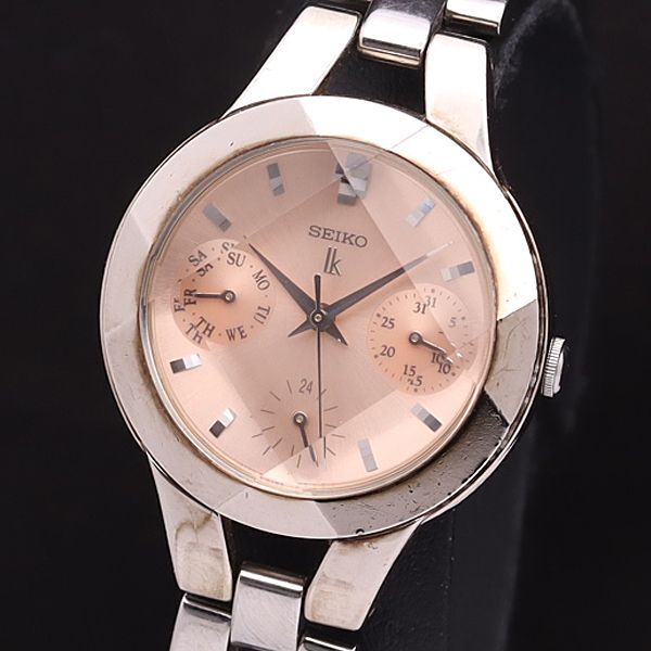 稼働 良品 コマ3付 セイコー QZ 5Y89-0A70 ルキア カットガラス デイデイト ピンク文字盤 レディース腕時計 YSD