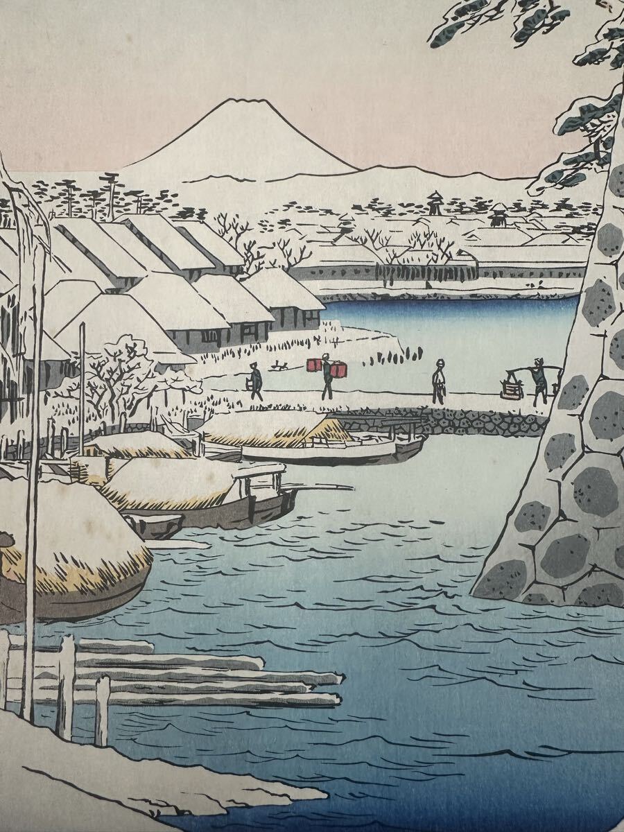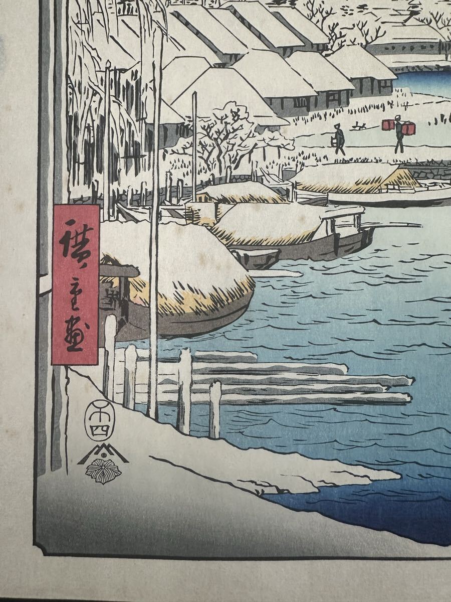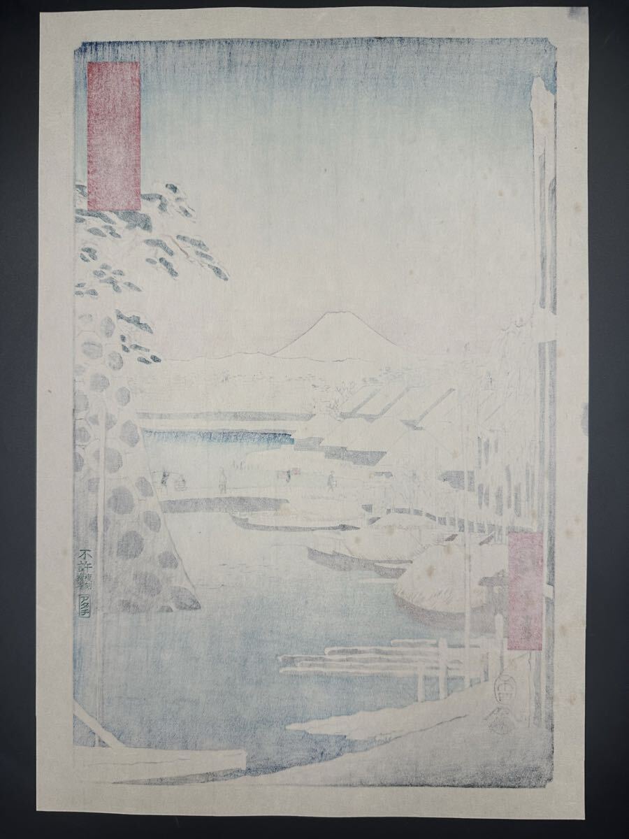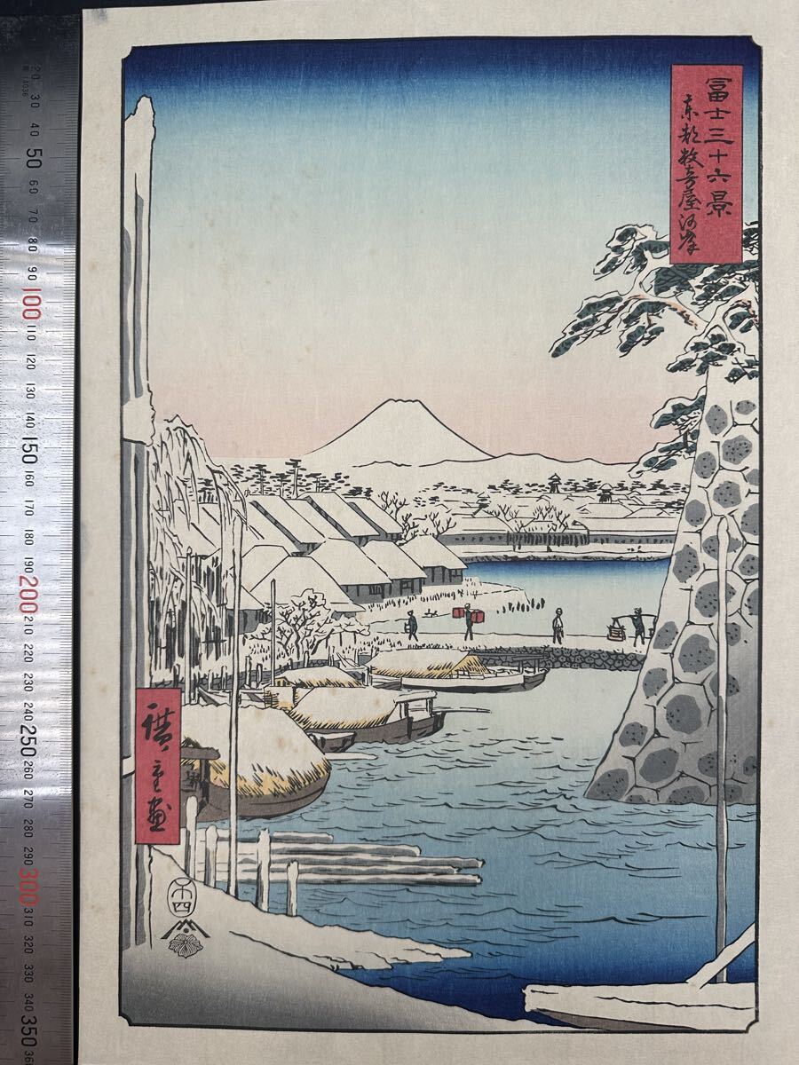 【真作】大正期 浮世絵木版画 歌川広重「冨士三十六景 東都数寄屋河岸」名所絵 大判 錦絵 保存良い