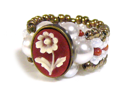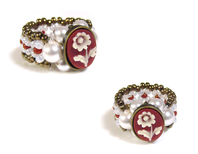 ☆COCO☆ミニカメオとスワロフスキーパールのリング☆