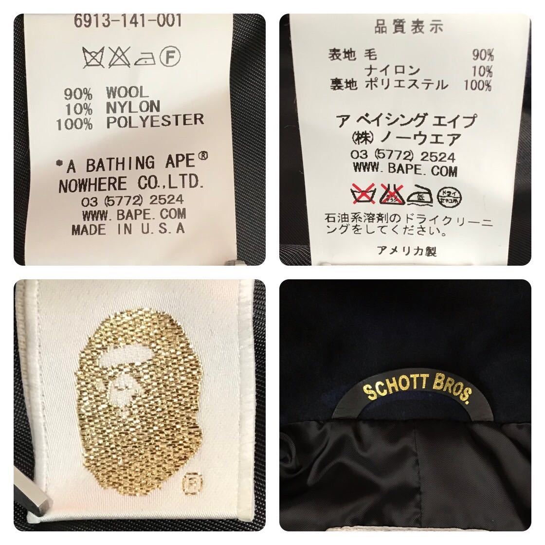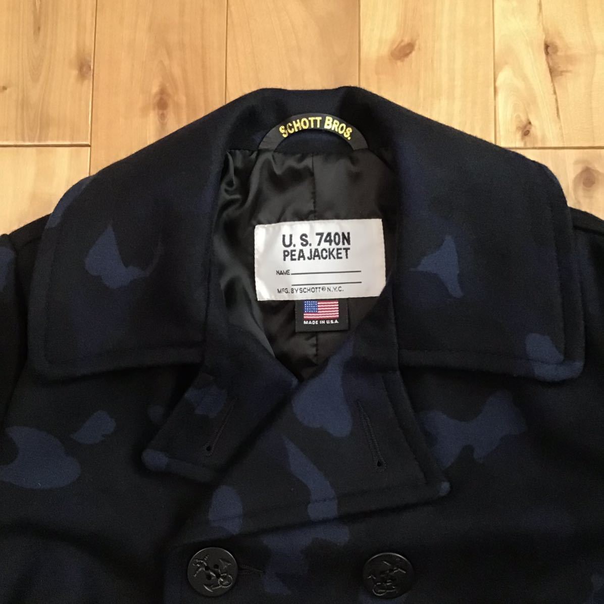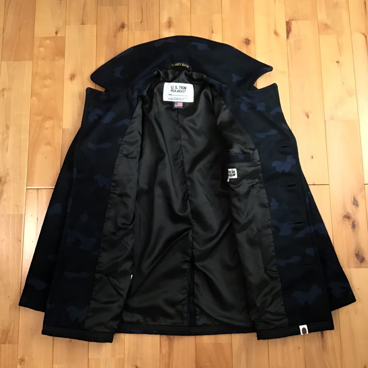 a bathing ape × SCHOTT BAPE camo メルトンウール ピーコート ネイビー Sサイズ です★