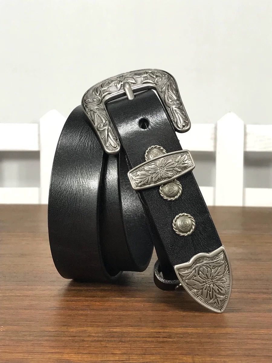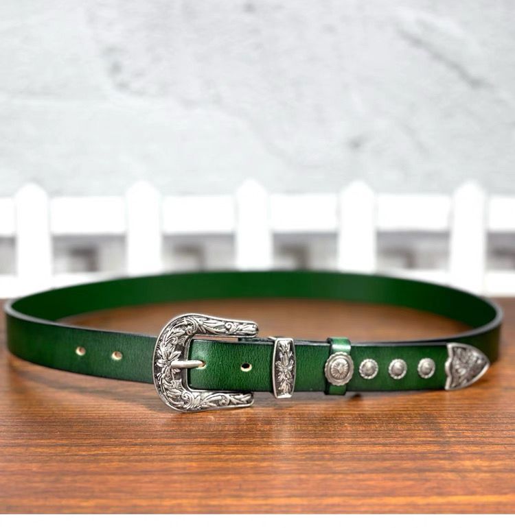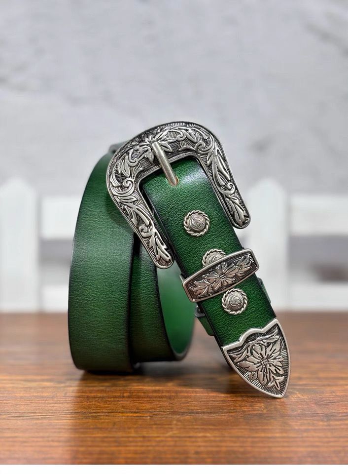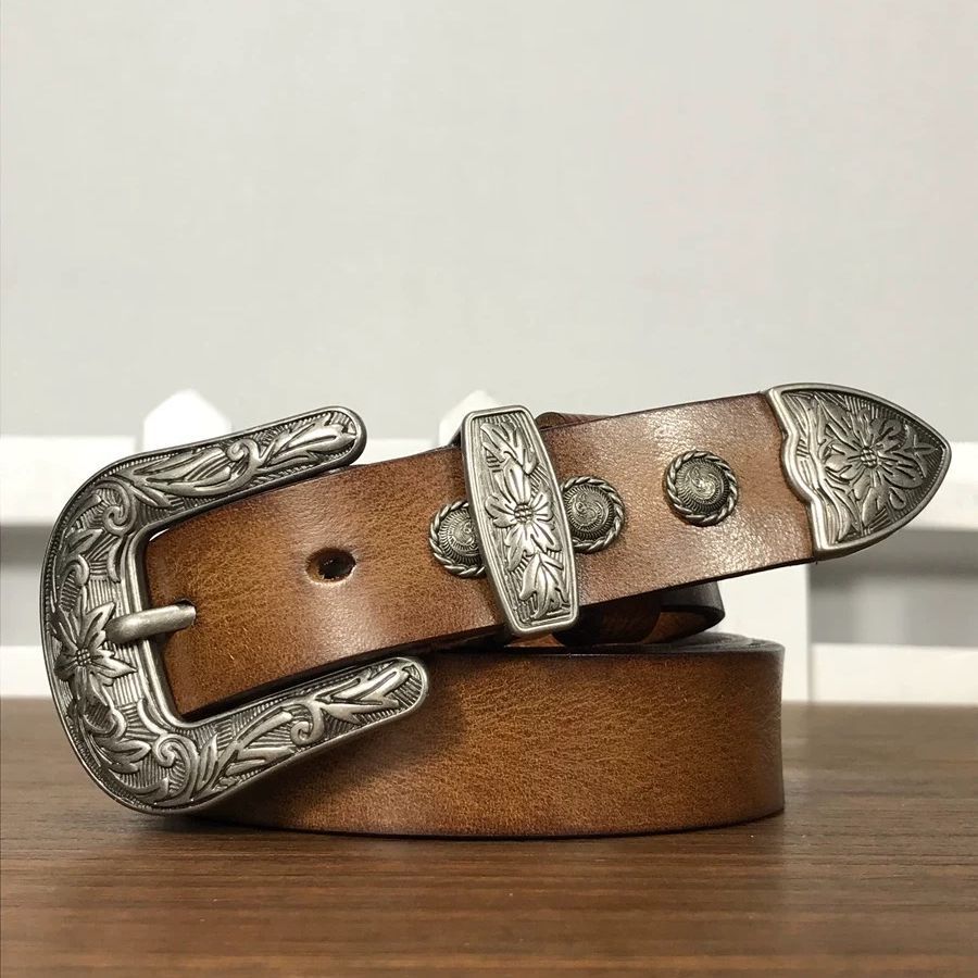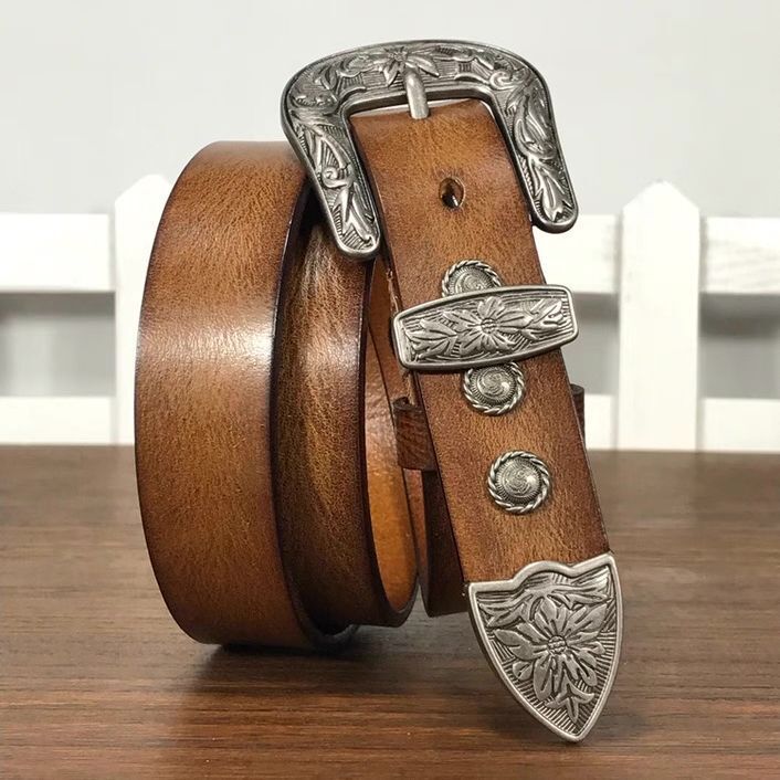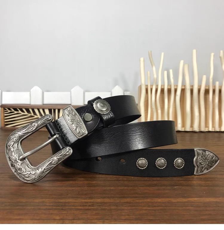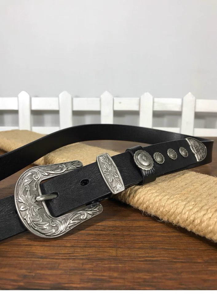 人気推薦 /本革 ベルト 革ベルト ジーンズベルト 唐草彫刻 バックル 幅2.8cm メンズ レディース ヴィンテージ風 高級感 ガーリー/B