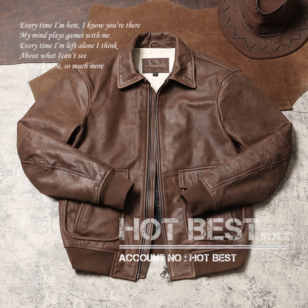1.2mm カウハイド 復刻30's USAF TYPE A-2 デザイナーズ メンズ 革ジャン フライトジャケット タンニンなめし 染料仕上げ 牛革 Y1469/3XL