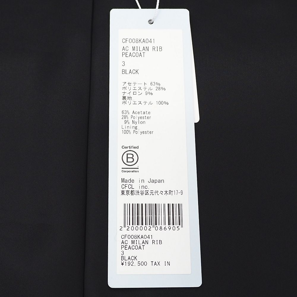 E06406 新品 24AW CFCL AC MILAN RIB PEACOAT ミラノリブ コート【サイズ:3】ブラック 定価192500円 CF008KAO41 シーエフシーエル メンズ