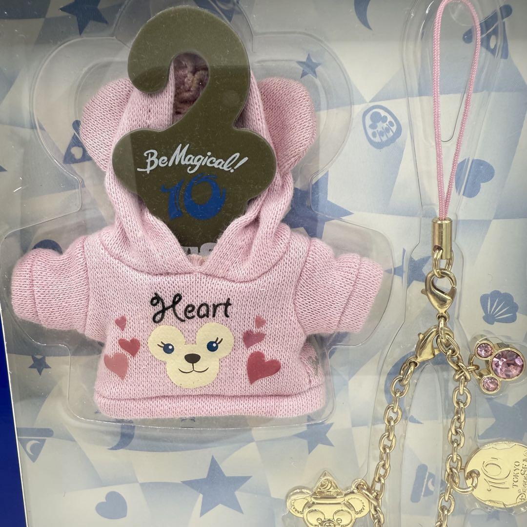 ダッフィー ストラップ ぬいぐるみ に着せられる洋服とストラップチャームがセットになっています。