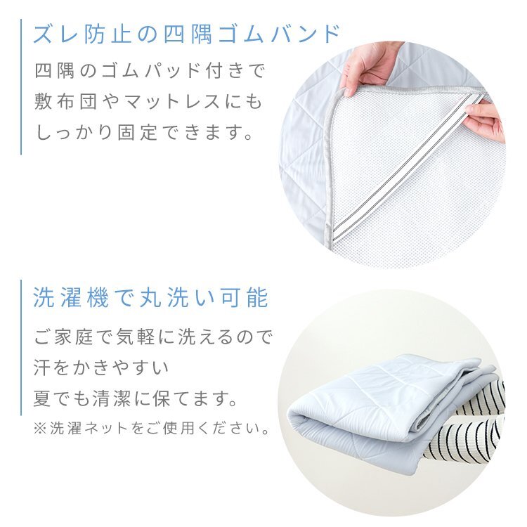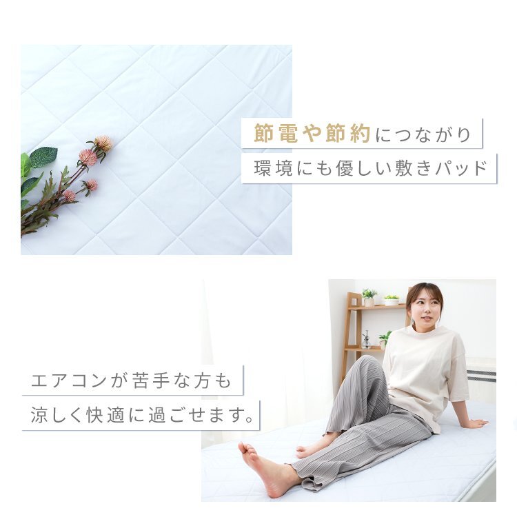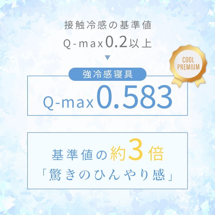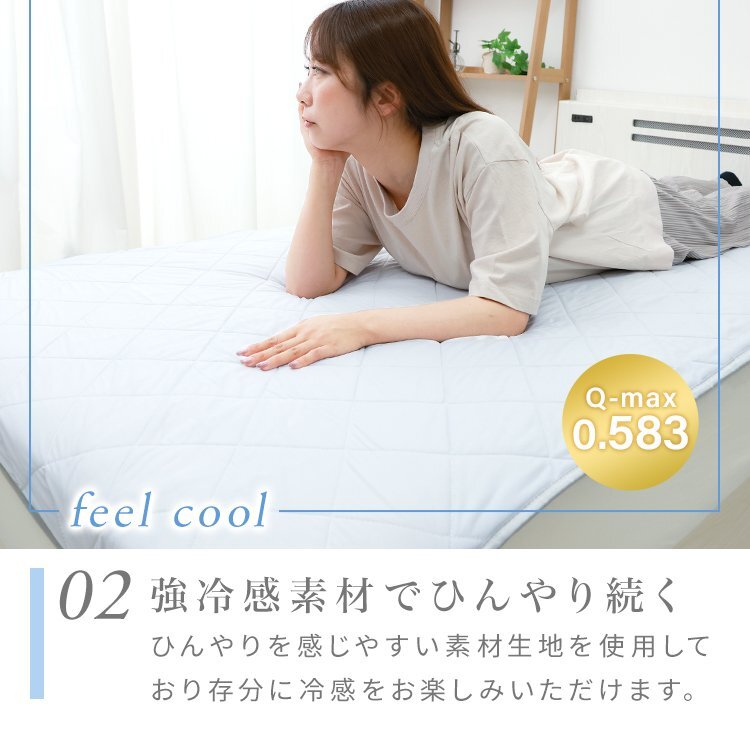 肌に触れるとひんやり冷たい素材の敷きパッドです。 Q-MAX0.583!強力接触冷感素材を表地に使用しています。 従来の商品に比べ、ひんやり感がグレードアップ! 優れた速乾性で汗をかいてもサラッと快適な寝心地です。 抗菌・消臭加工を施しているので、洗濯時の部屋干しのイヤな臭いもしにくいです♪ 節電・節約対策としても抜群です! 【商品詳細】 カラー:ミルキーホワイト サイズ(約):100×200cm(シングルサイズ) 素材:ナイロン、ポリエステル その他:Q-MAX0.583 ※Q-MAXとは物体に接触する際に感じる熱移動を評価する数値のことを指します。数値が大きいほど冷たいと評価されます。(0.2以上が接触冷感繊維の基準となっています。) |