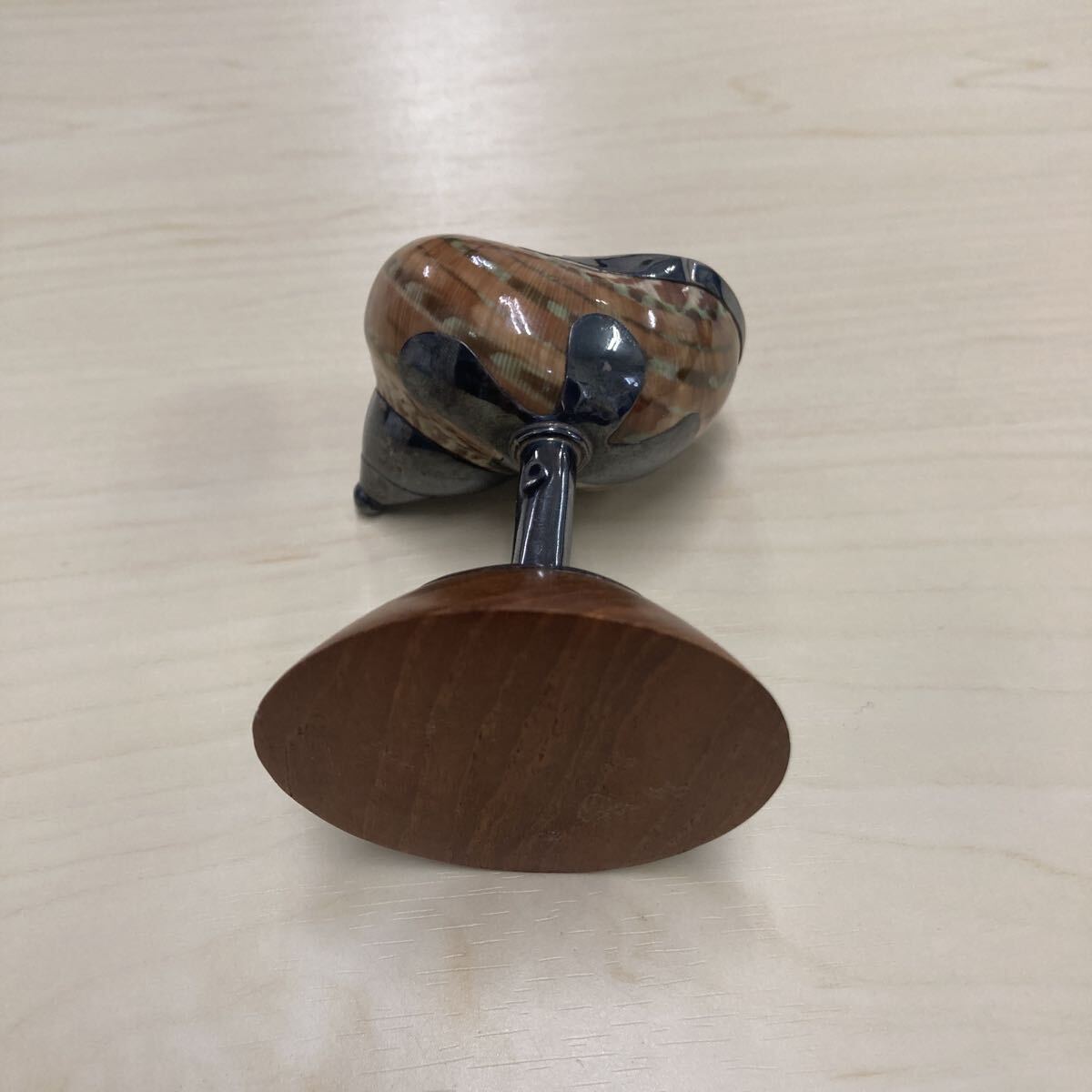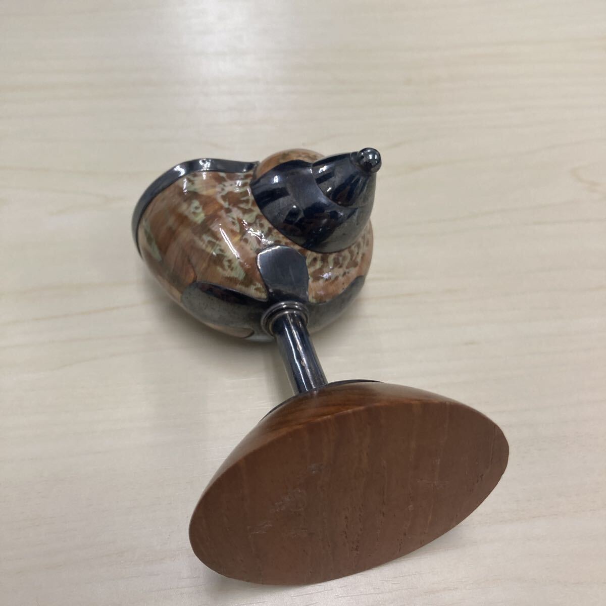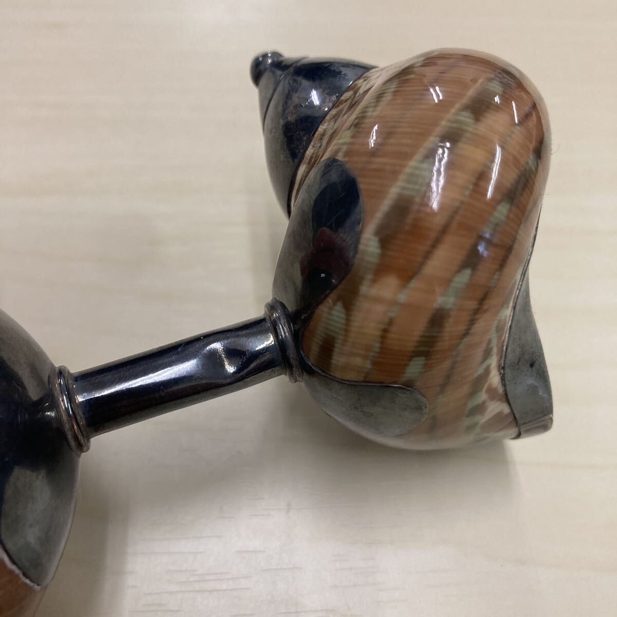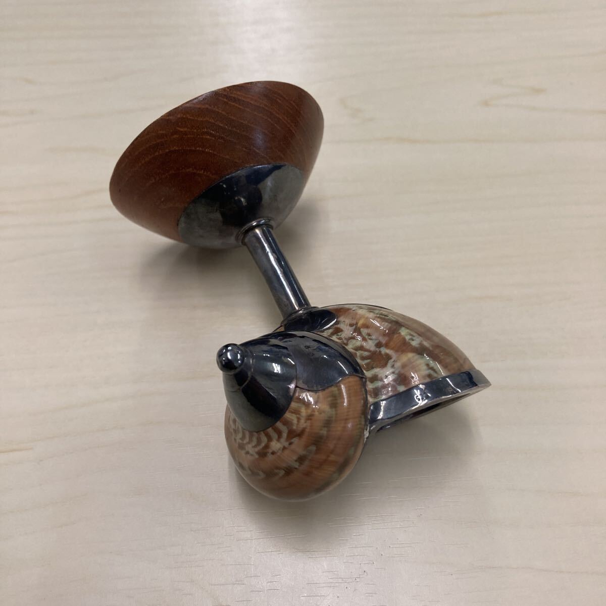 貝殻とシルバーの作りになってます。土台は木製です。