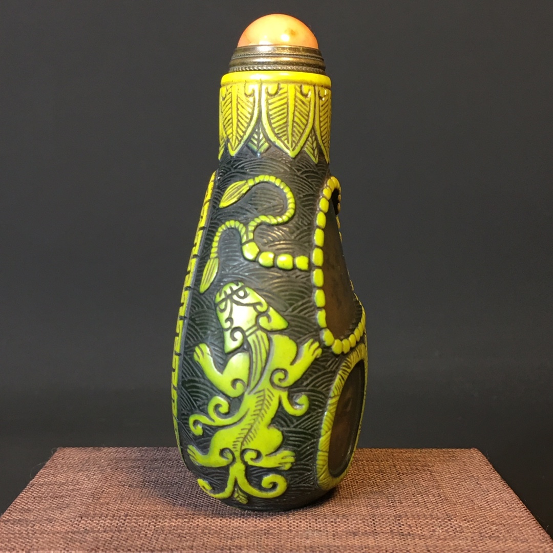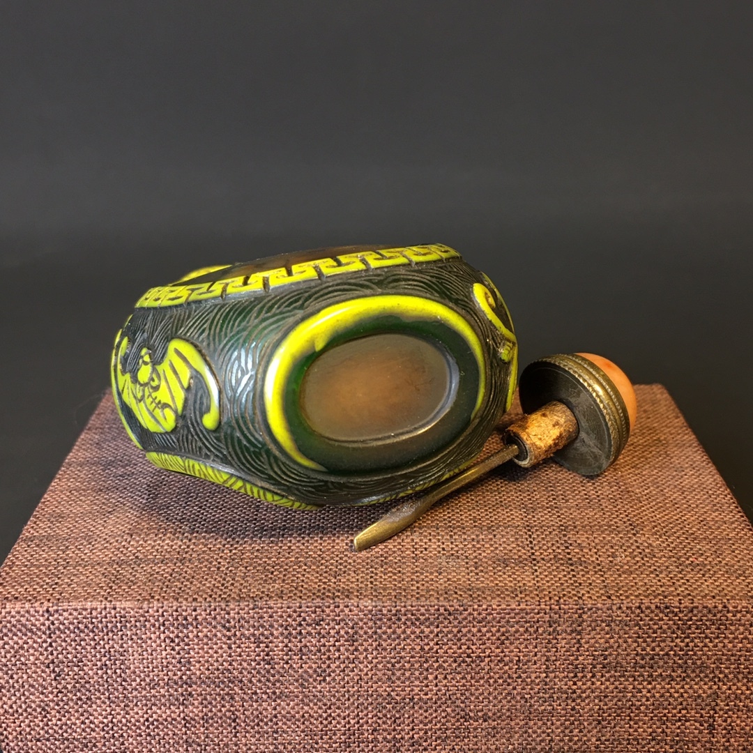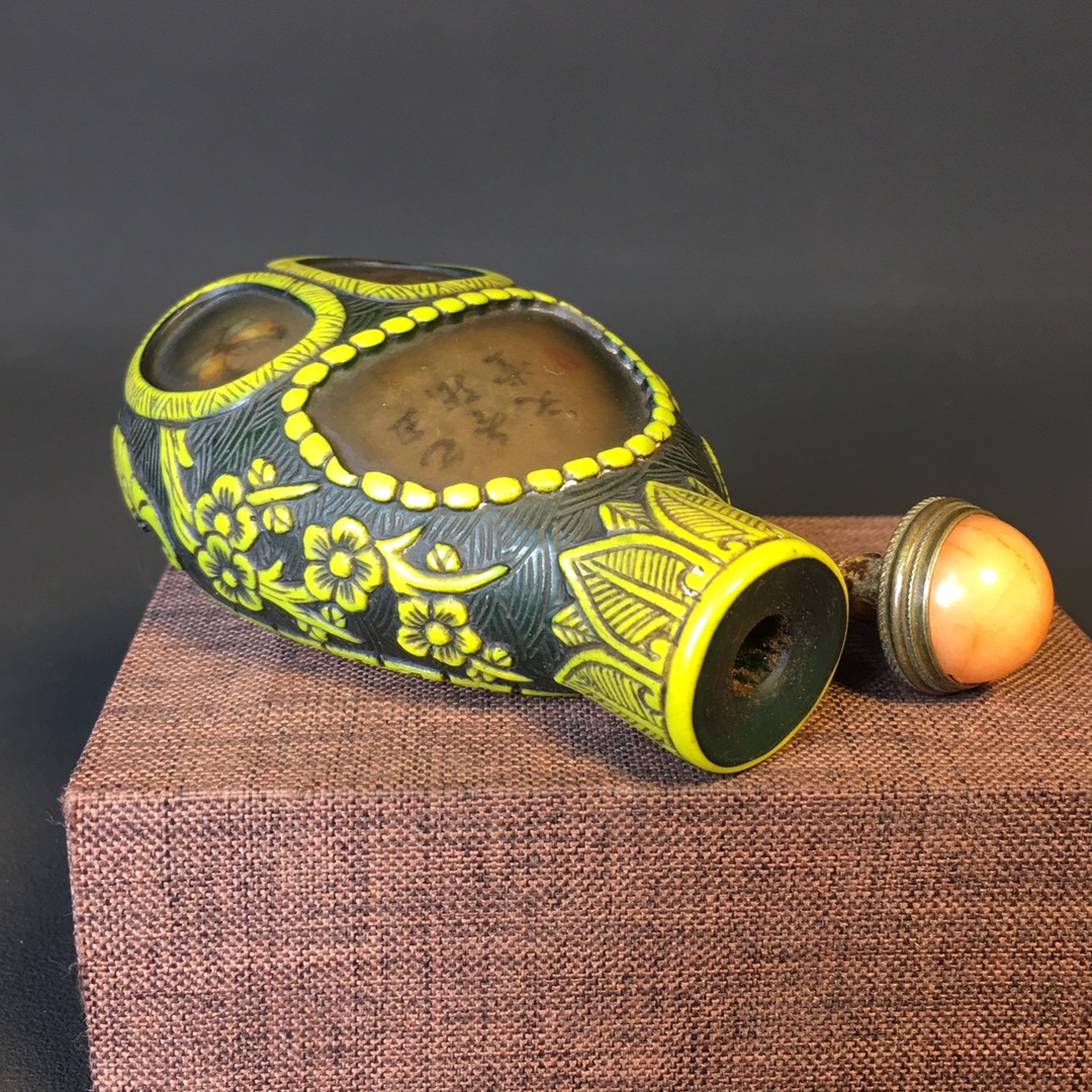 中国骨董品 和田玉『瑠璃彫刻の中に鼻煙壺を描いたものです』 彫刻工芸品 伝世家珍 風水開運 精美彫 收藏品 置物 | ||||||