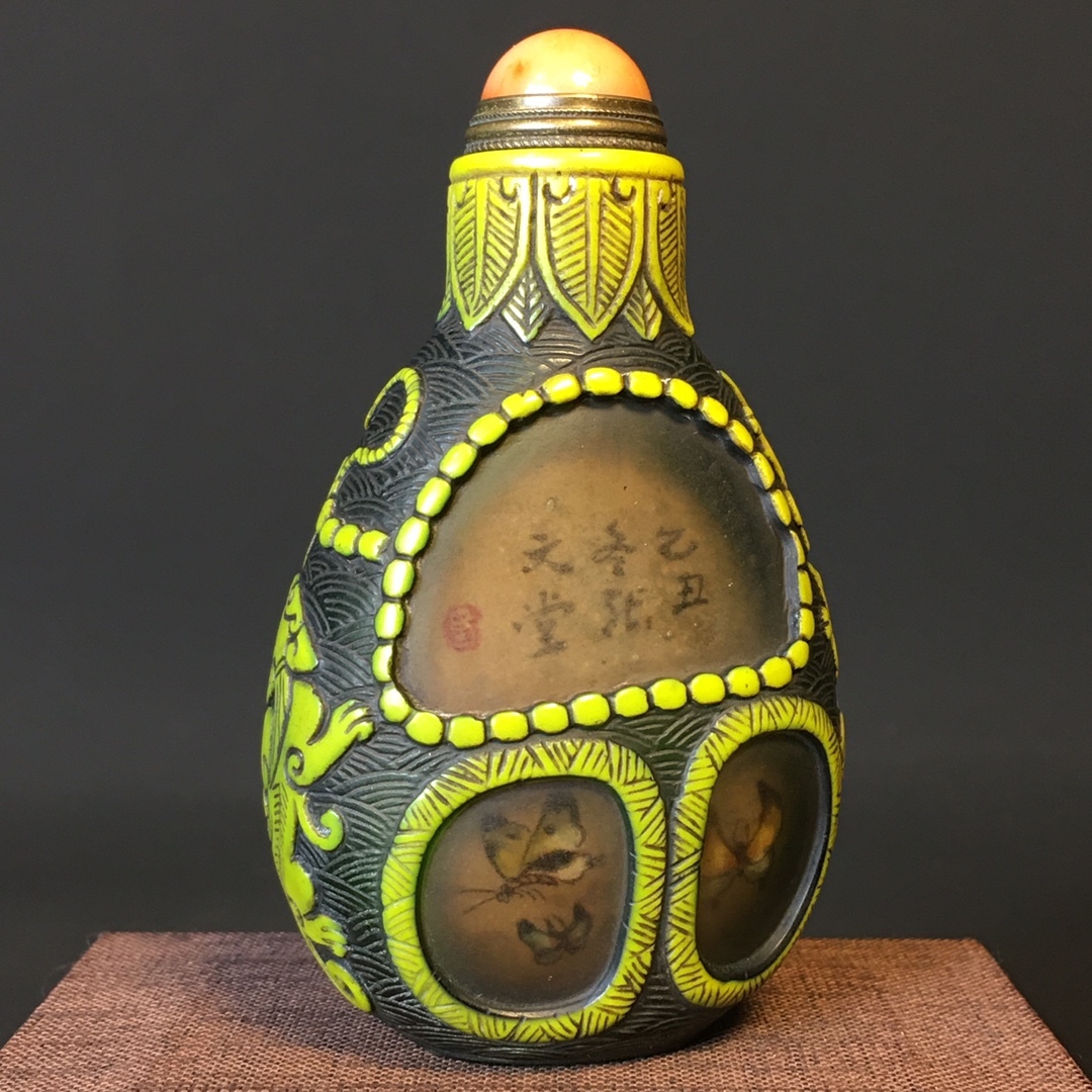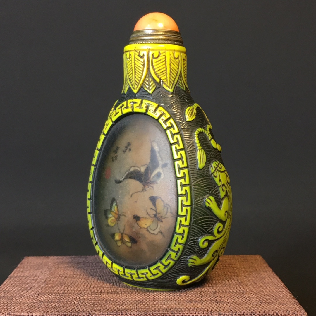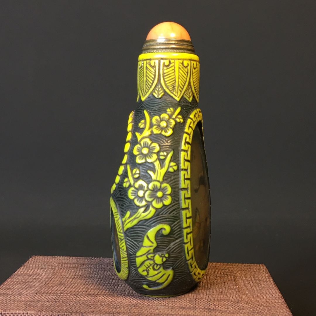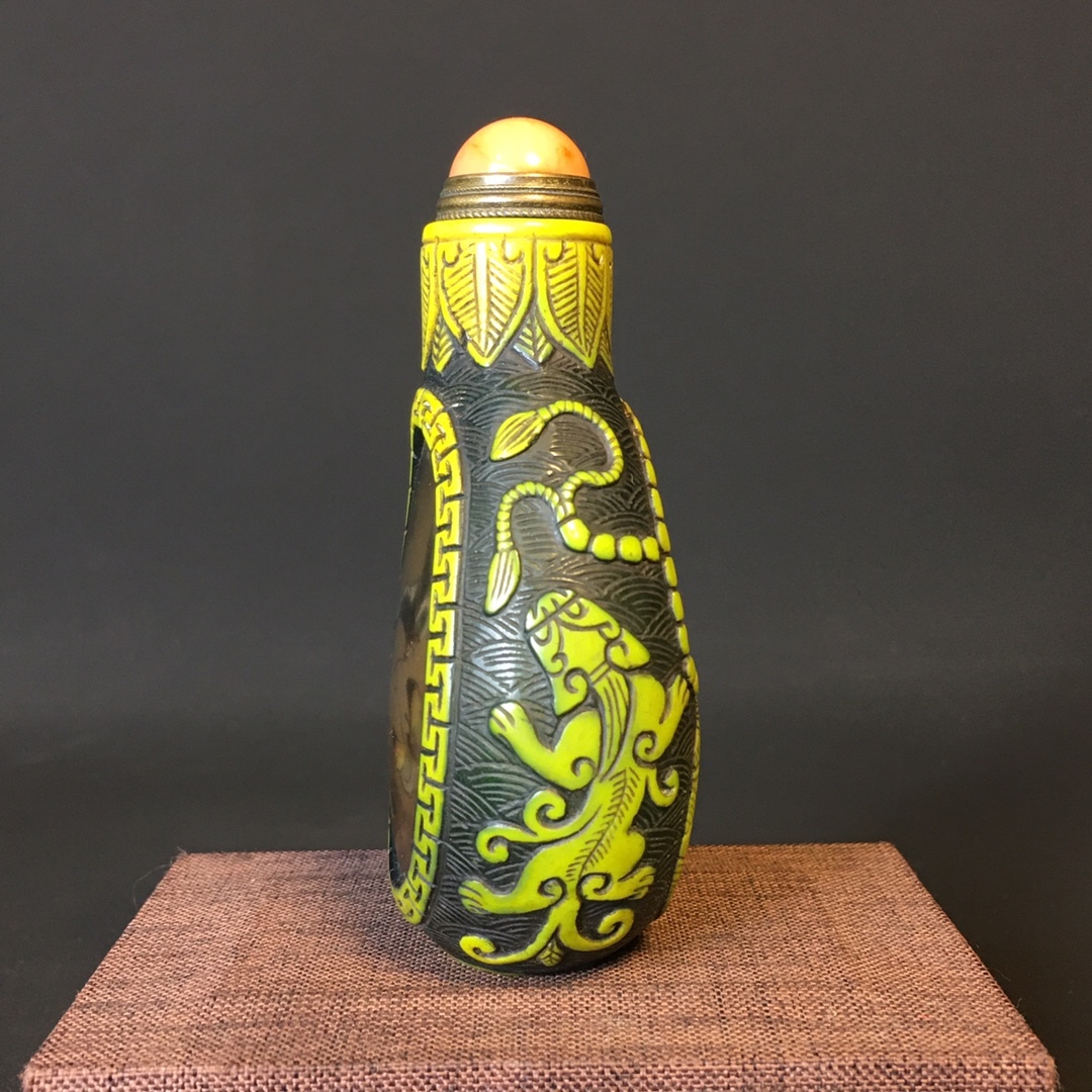 中国骨董品 和田玉『瑠璃彫刻の中に鼻煙壺を描いたものです』 彫刻工芸品 伝世家珍 風水開運 精美彫 收藏品 置物 | ||||||