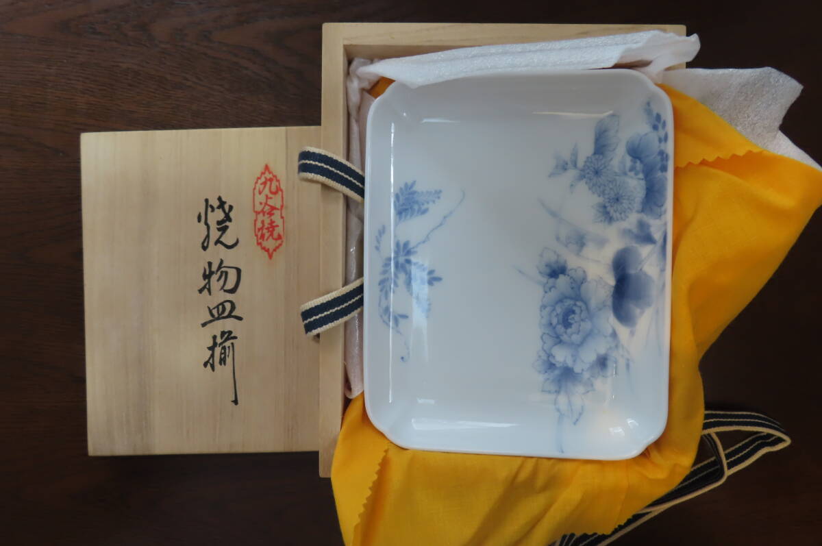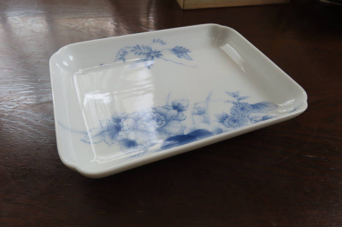 【未使用品】藍九谷焼/妙泉陶房/山本長左、角皿5枚セット