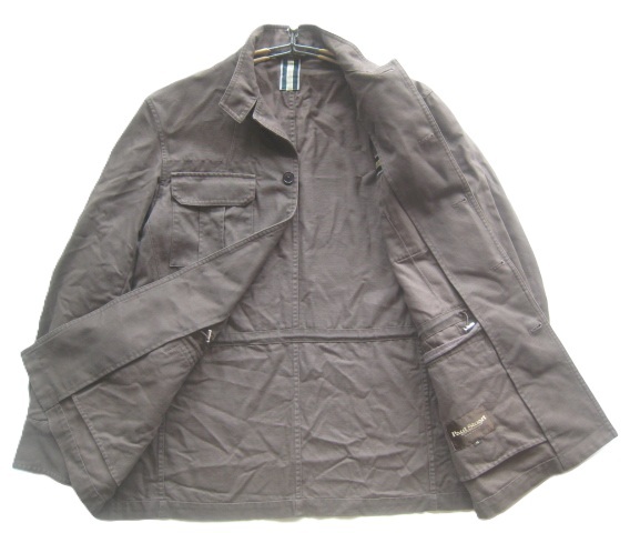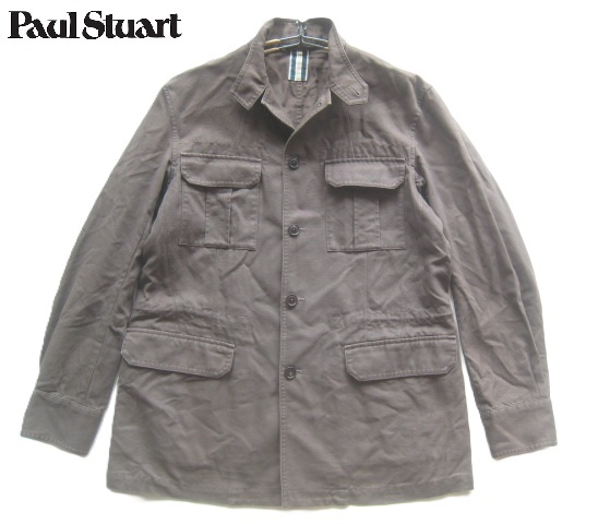 美品!!ポールスチュアート Paul Stuart*立ち襟コットンキャンバス ミリタリージャケット M 茶 ブラウン カバーオール型
