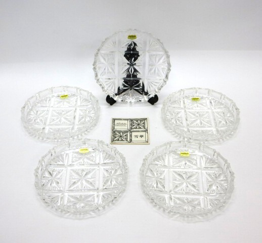 【9-104】未使用 Noritake CRYSTAL ノリタケ クリスタル プレート ガラス皿 5枚セット 約15.5cm 昭和レトロ | ||