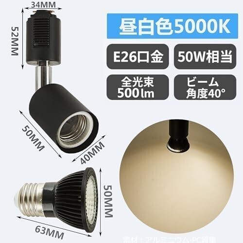 ダクトレール スポットライト E26 LED電球付き 50W ダクトレール 照明 ライティングレール 照明 レール 照明 ダクトレール ライト レール ライト LED電球+ダクトレール用照明器具セット (ブラック昼白色 6個セット) 商品詳細 【6個セット E26 LED電球+ 器具セット】工場から直売のため、品質保証の前提でできる限り安い値段で提供致します。