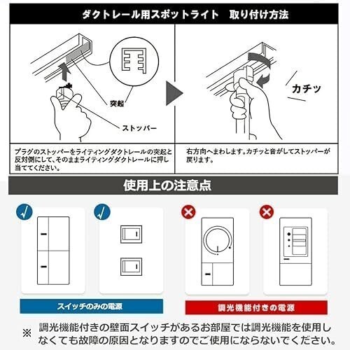ライティングレール専用:お部屋のダクトレールに簡単に取り付けることができます。