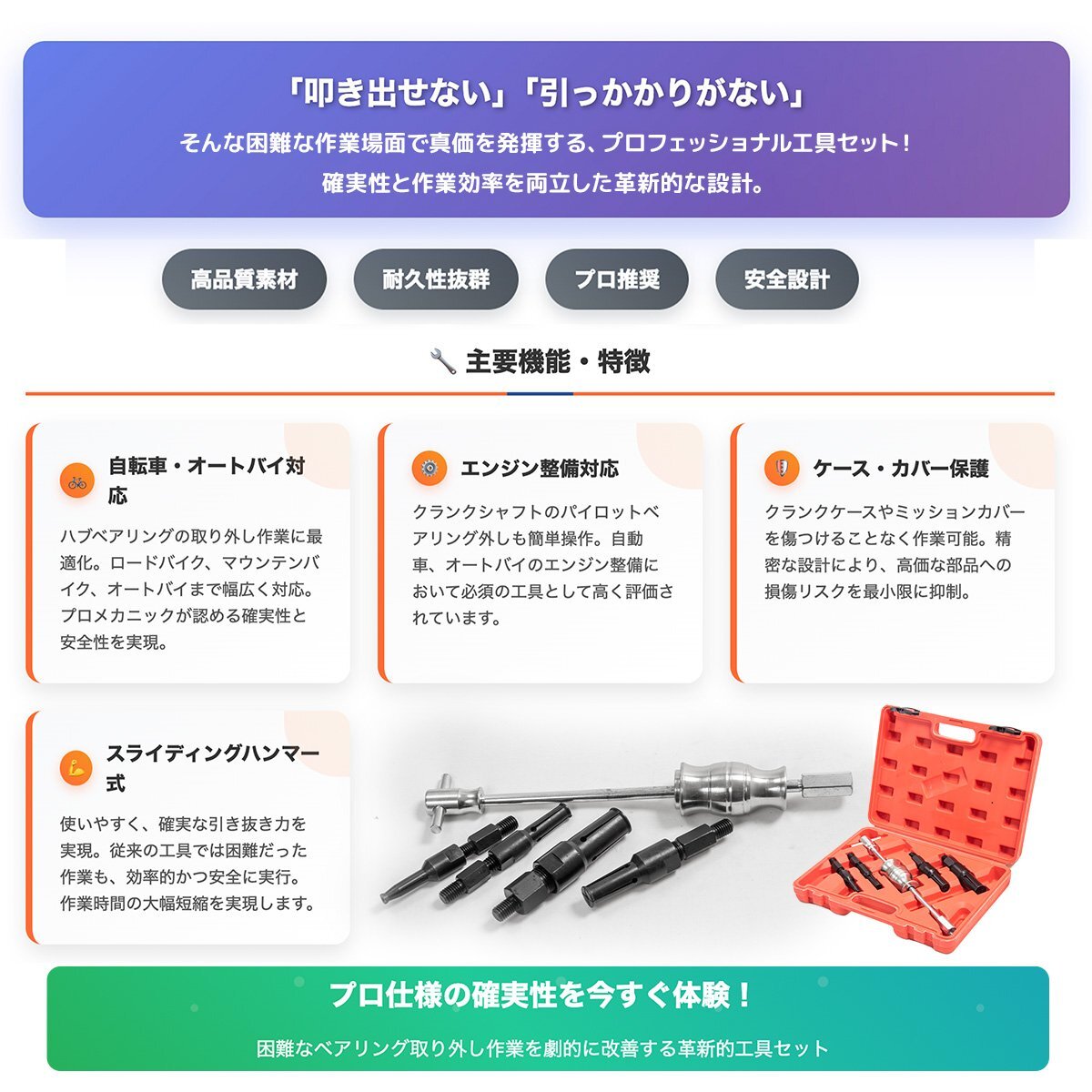 スライディングハンマー付 内掛 ブラインドベアリングプーラー パイロット インナーベアリングプーラー アダプター4種 ケース付き!! Type-2