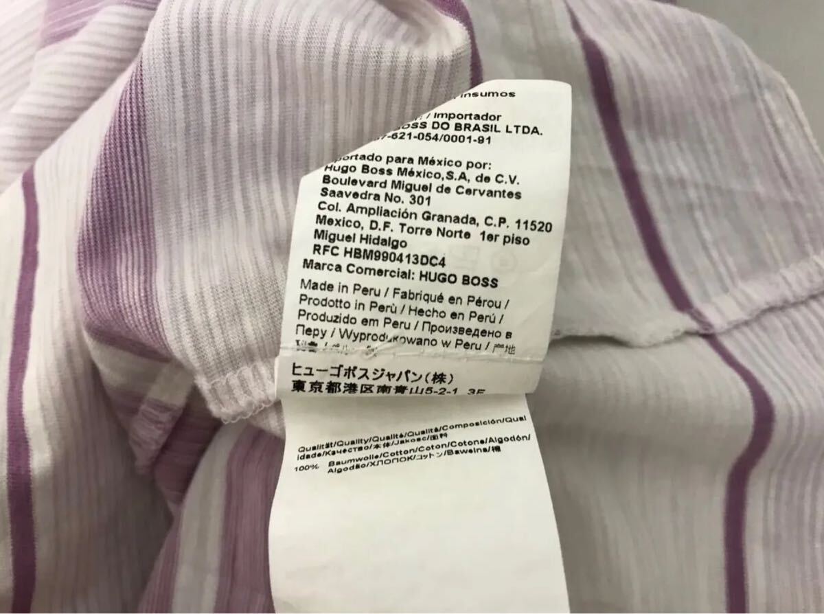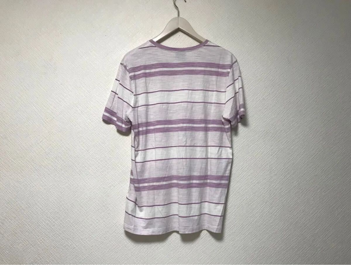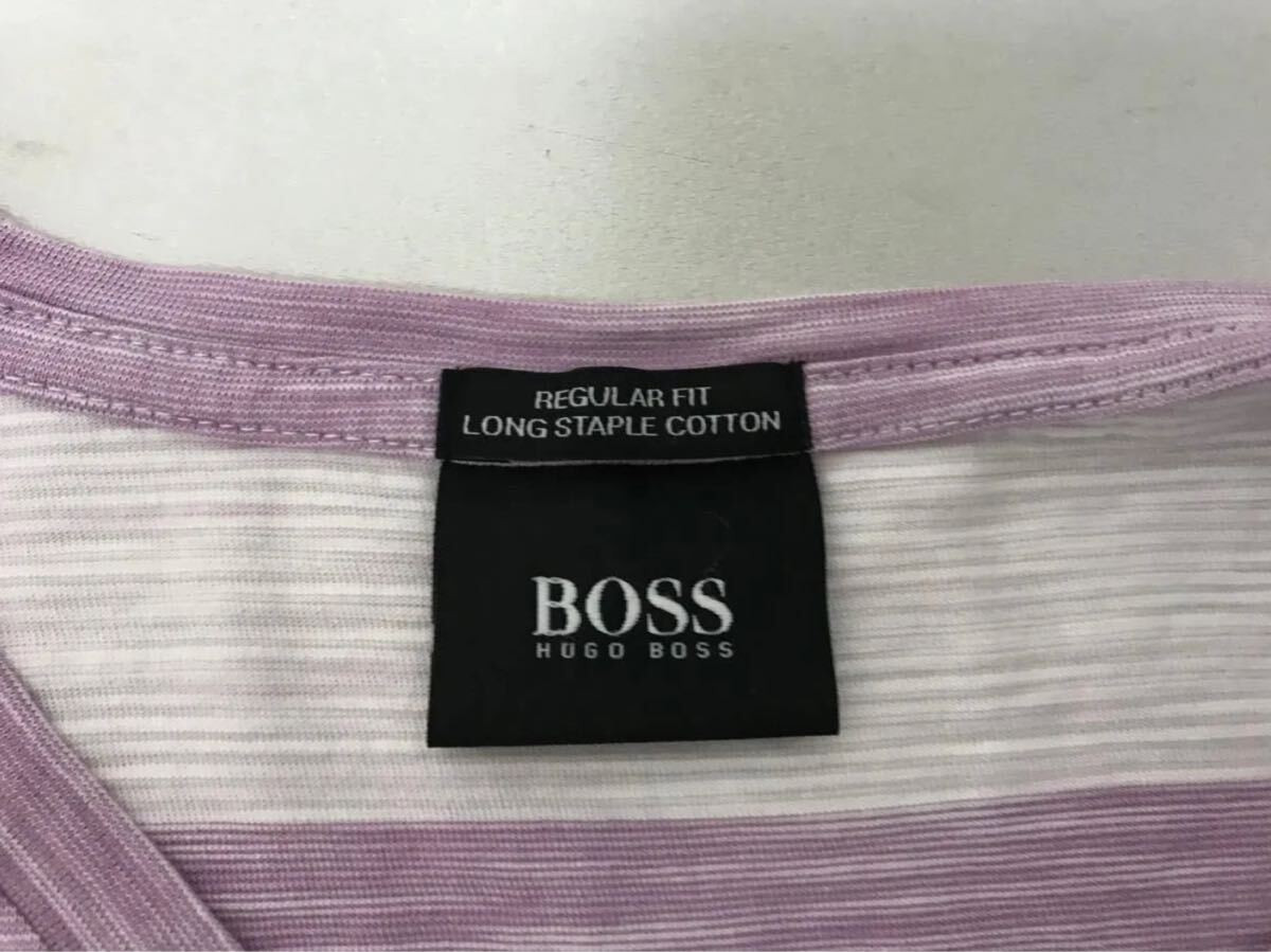 商品名:本物ヒューゴボスHUGOBOSSコットンボーダー柄Vネック半袖Tシャツメンズサーフアメカジミリタリーストリートスケーターワークビジネススーツモードゴルフ白ホワイトピンクMペルー製