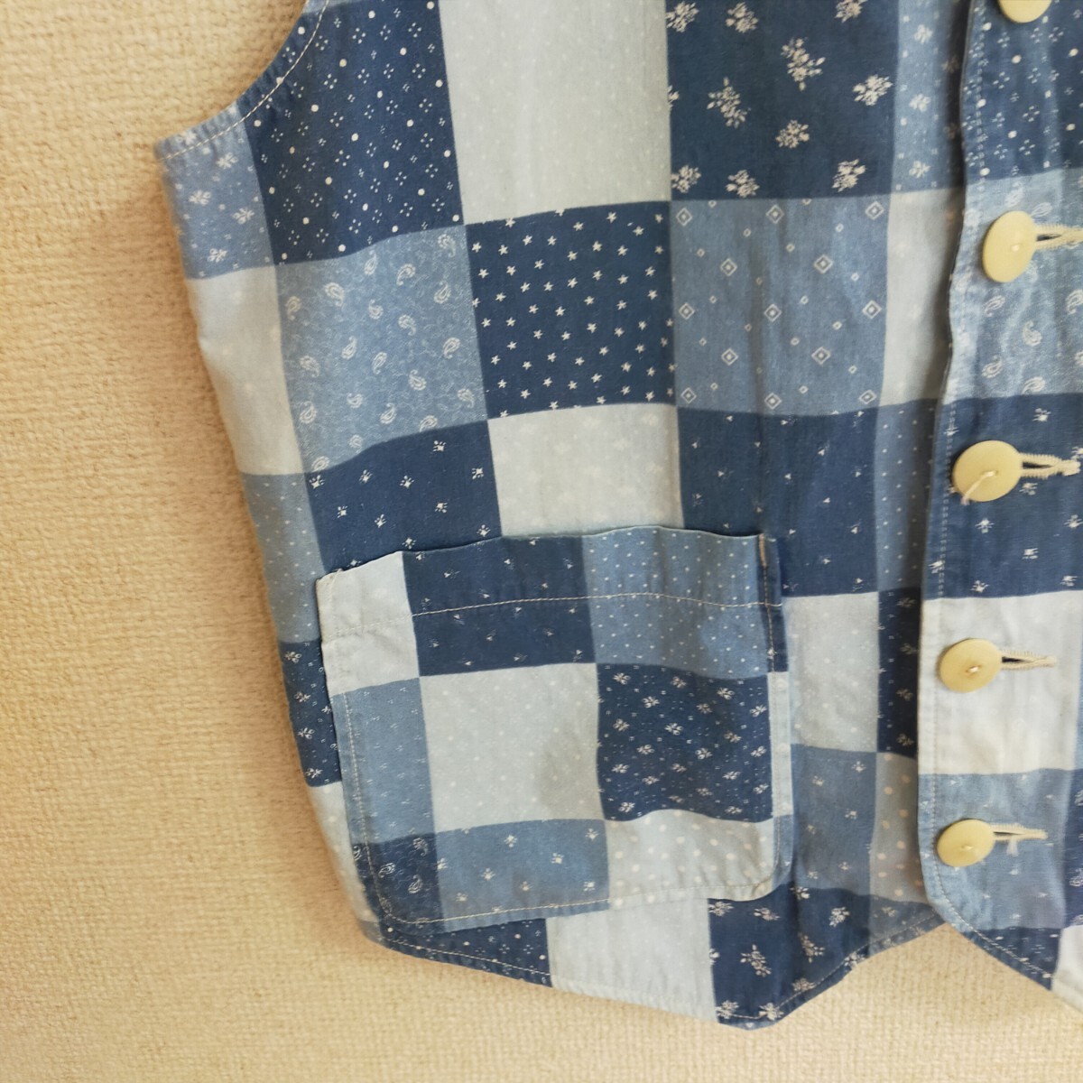 | PHERROW'S フェローズ パッチワーク風 ベスト ジレ ペイズリー バンダナ シャンブレーデニム 38(M) インディゴブルー | |